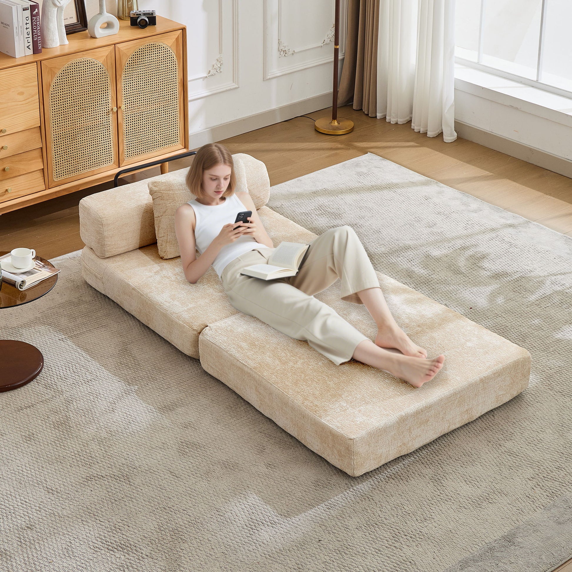 Convertible Floor Sofa Bed With Fixed Shape Frame For Living Room - Beige