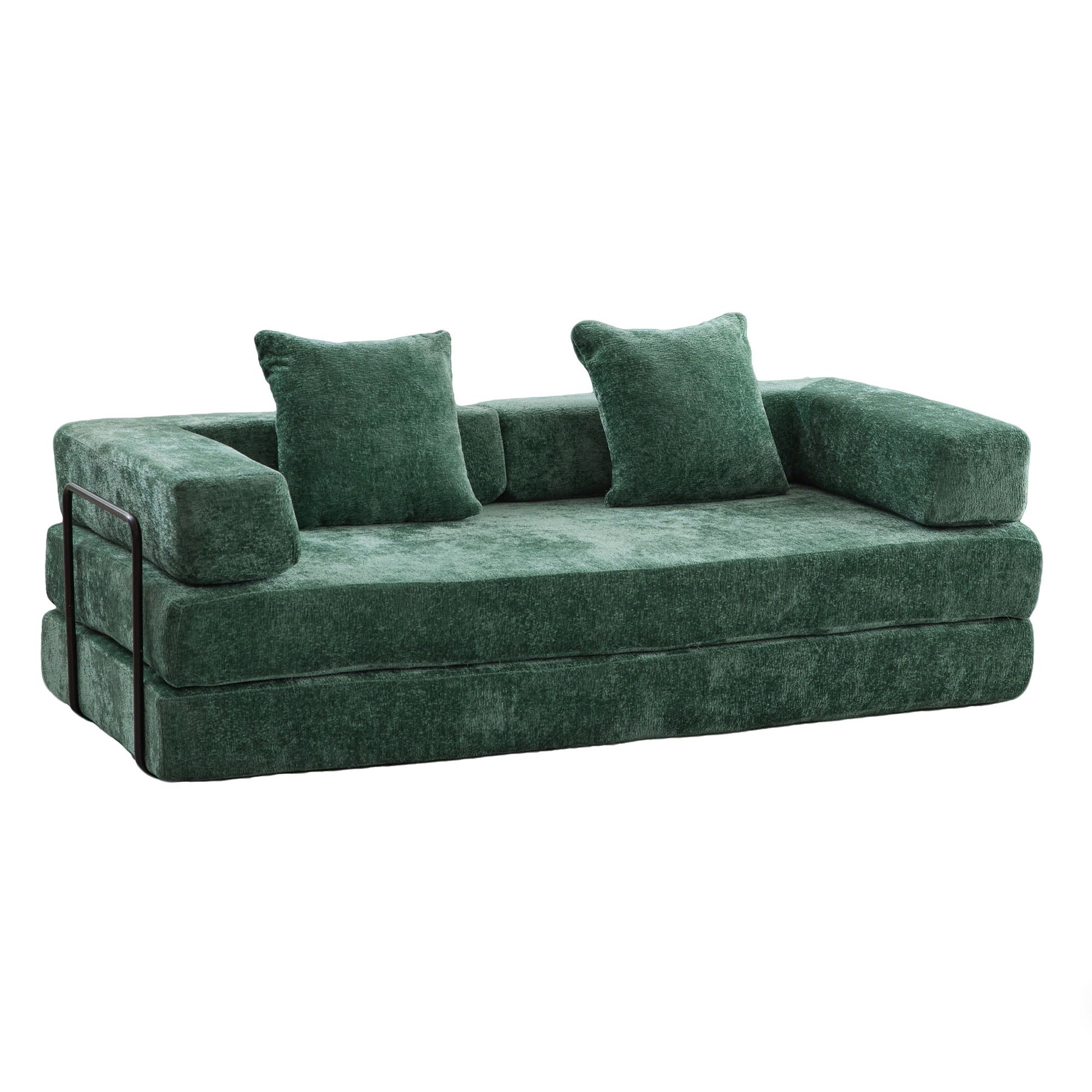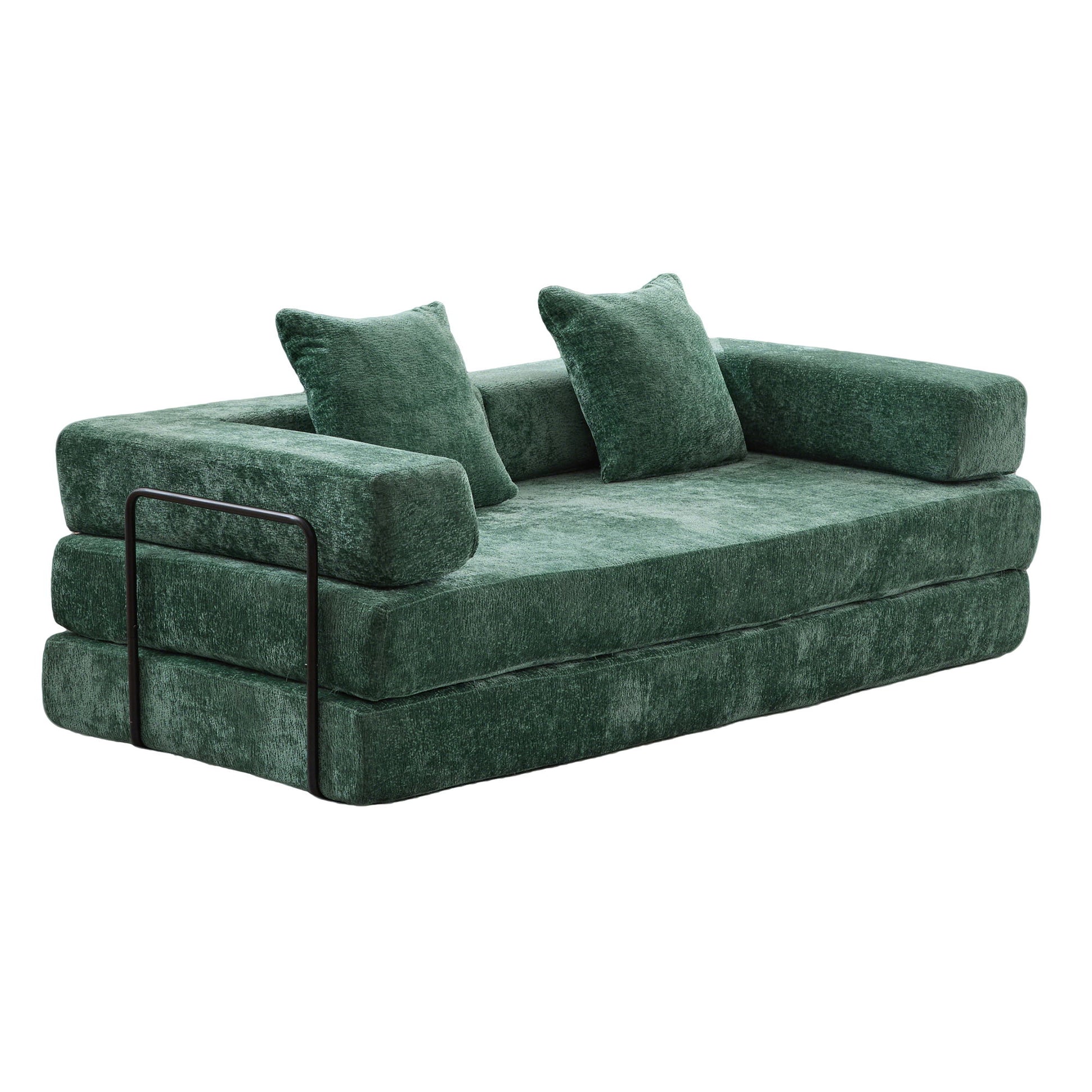 Convertible Floor Sofa Bed With Fixed Shape Frame, Loveseats Boneless Modular Sectional, For Living Room - Dark Green