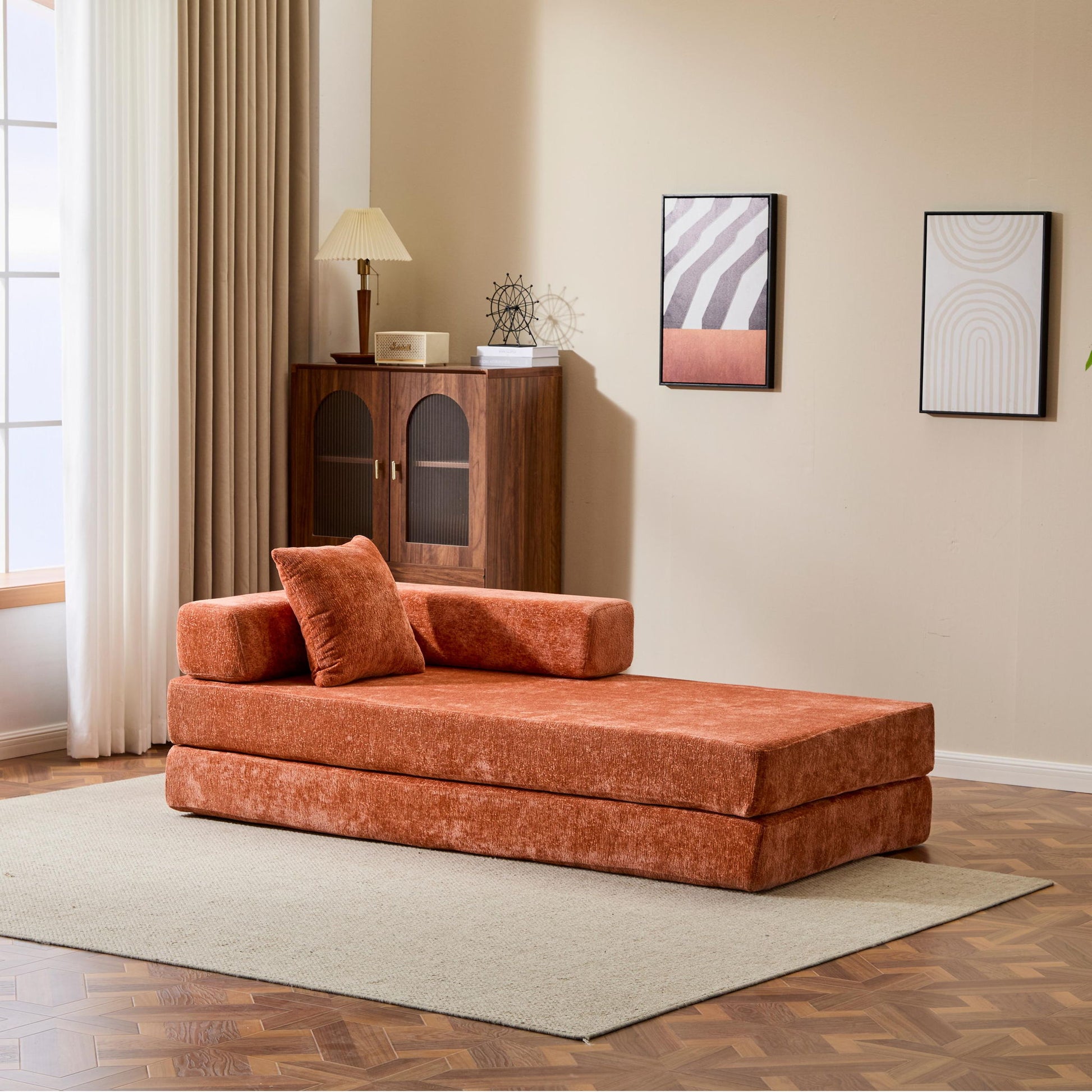Floor Couch, Compression Sofa, Convertible Floor Sofa Bed With Pillow Back Support Armrest - Orange
