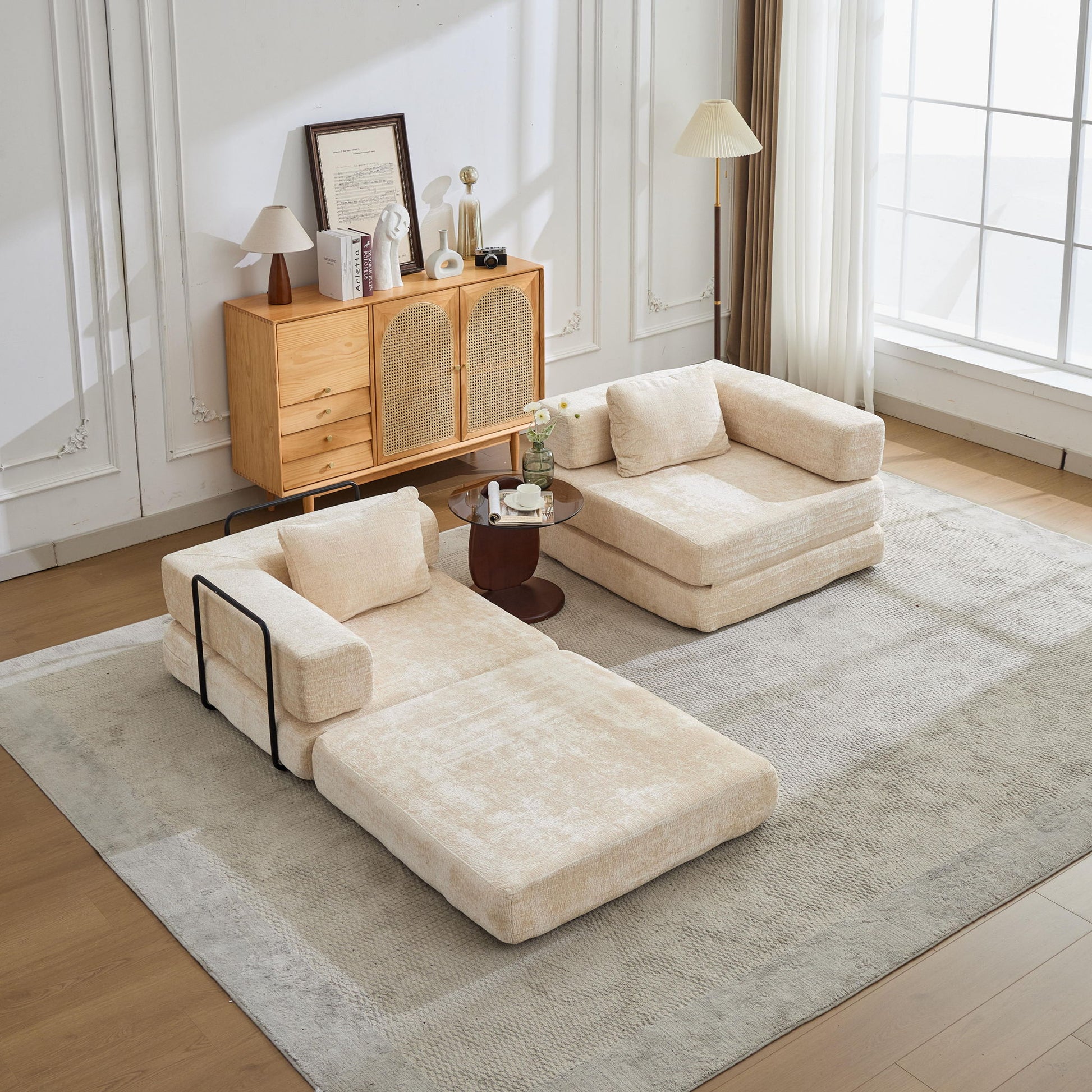Convertible Floor Sofa Bed With Fixed Shape Frame, Loveseats Boneless Modular Sectional, For Living Room - Beige