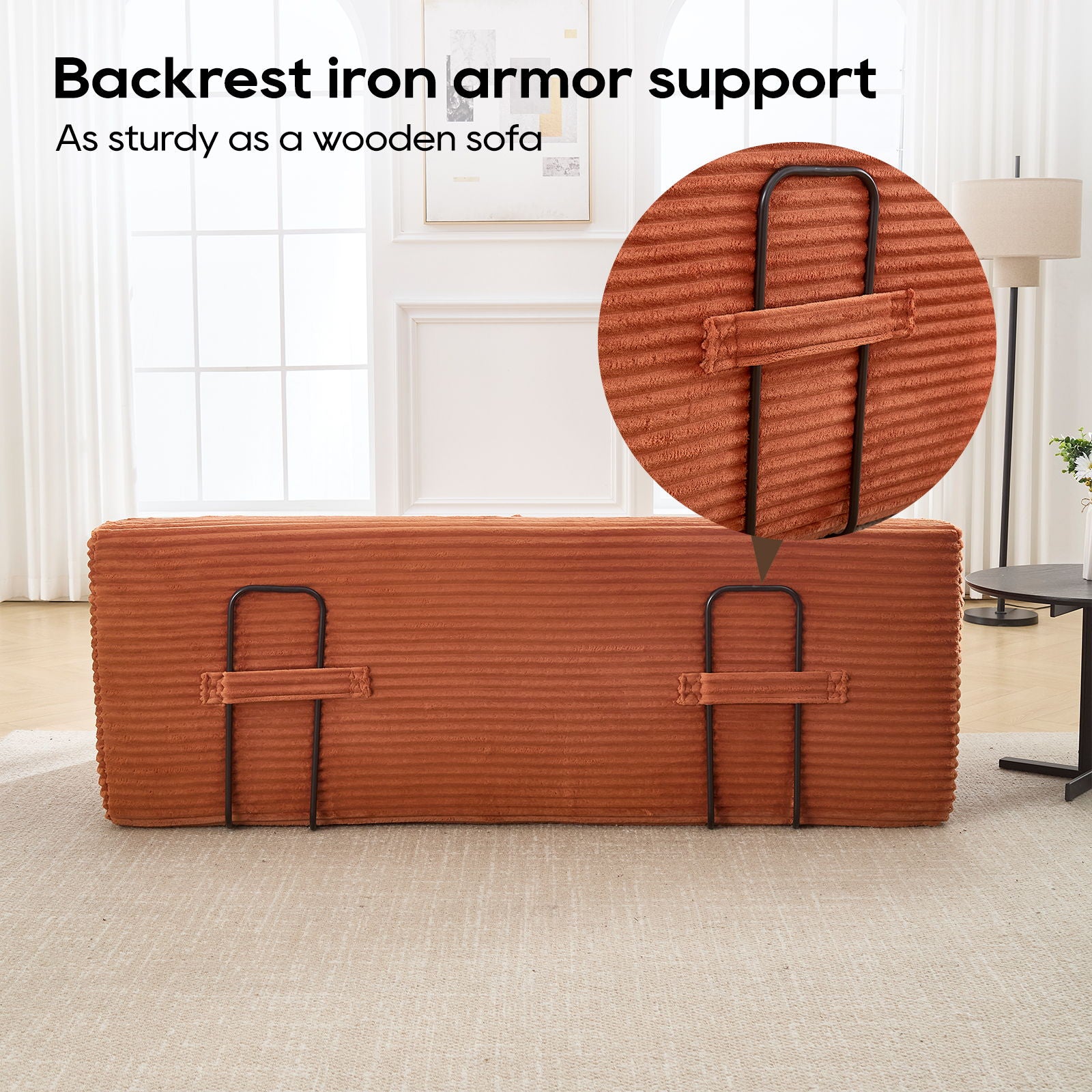 Compact Loveseat Sofa With Memory Foam & Steel Frame Convertible 2 In 1 Design - Orange