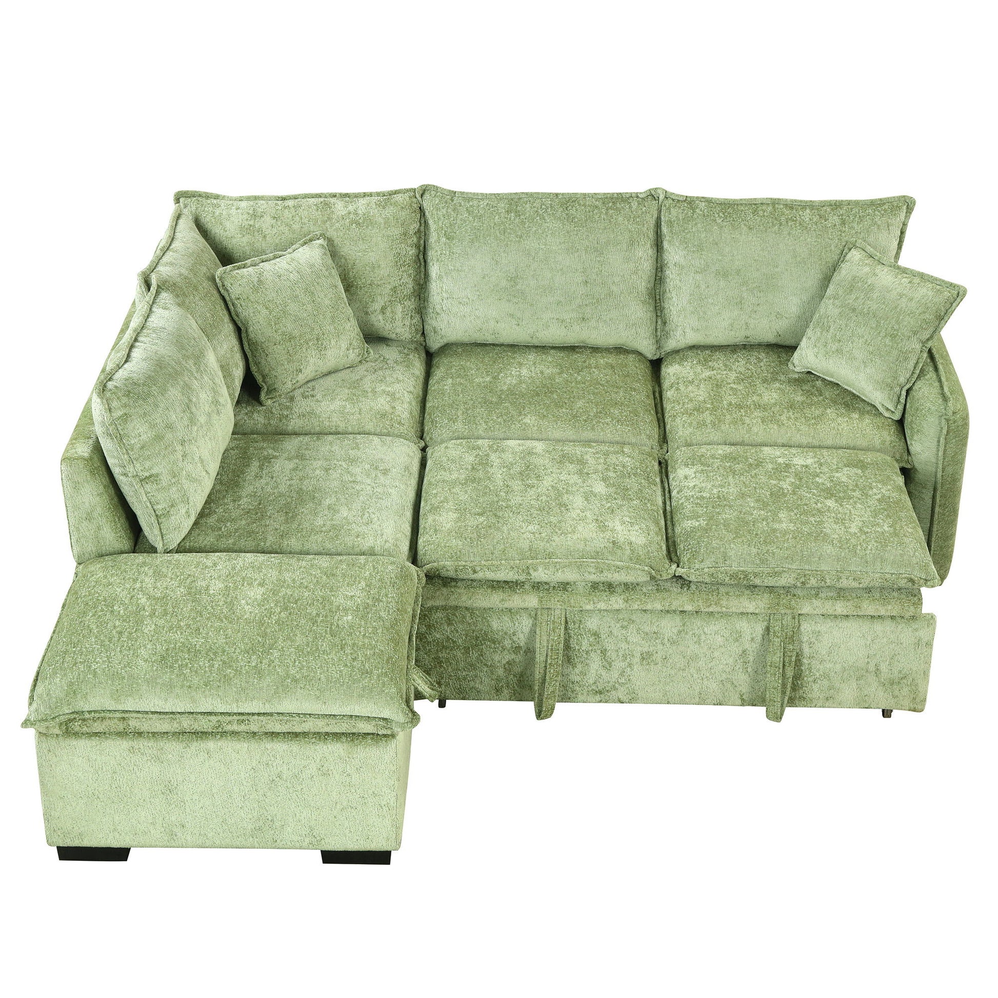 Convertible Sofa Bed Sectional Sofa Sleeper L-Shaped Sofa With A Storage Ottoman, Two Pillows, Two Power Sockets And Two USB Ports For Living Room - Green