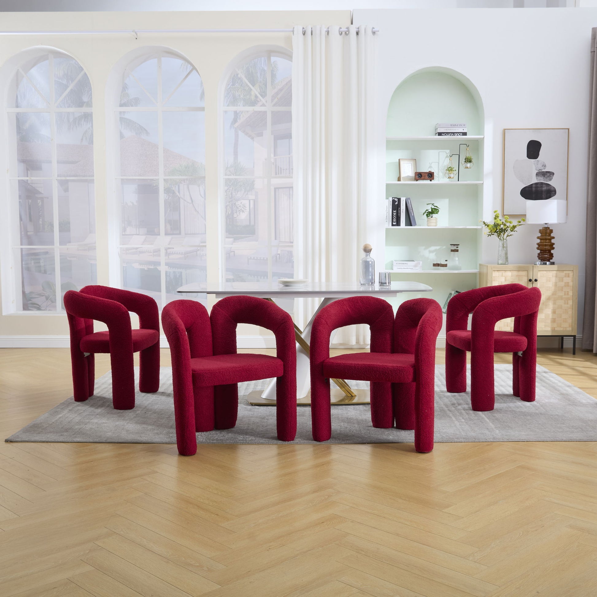 Contemporary Upholstered Accent / Dining Chair (Set of 2) Teddy Velvet Fabric With Sturdy Steel Frame - Red