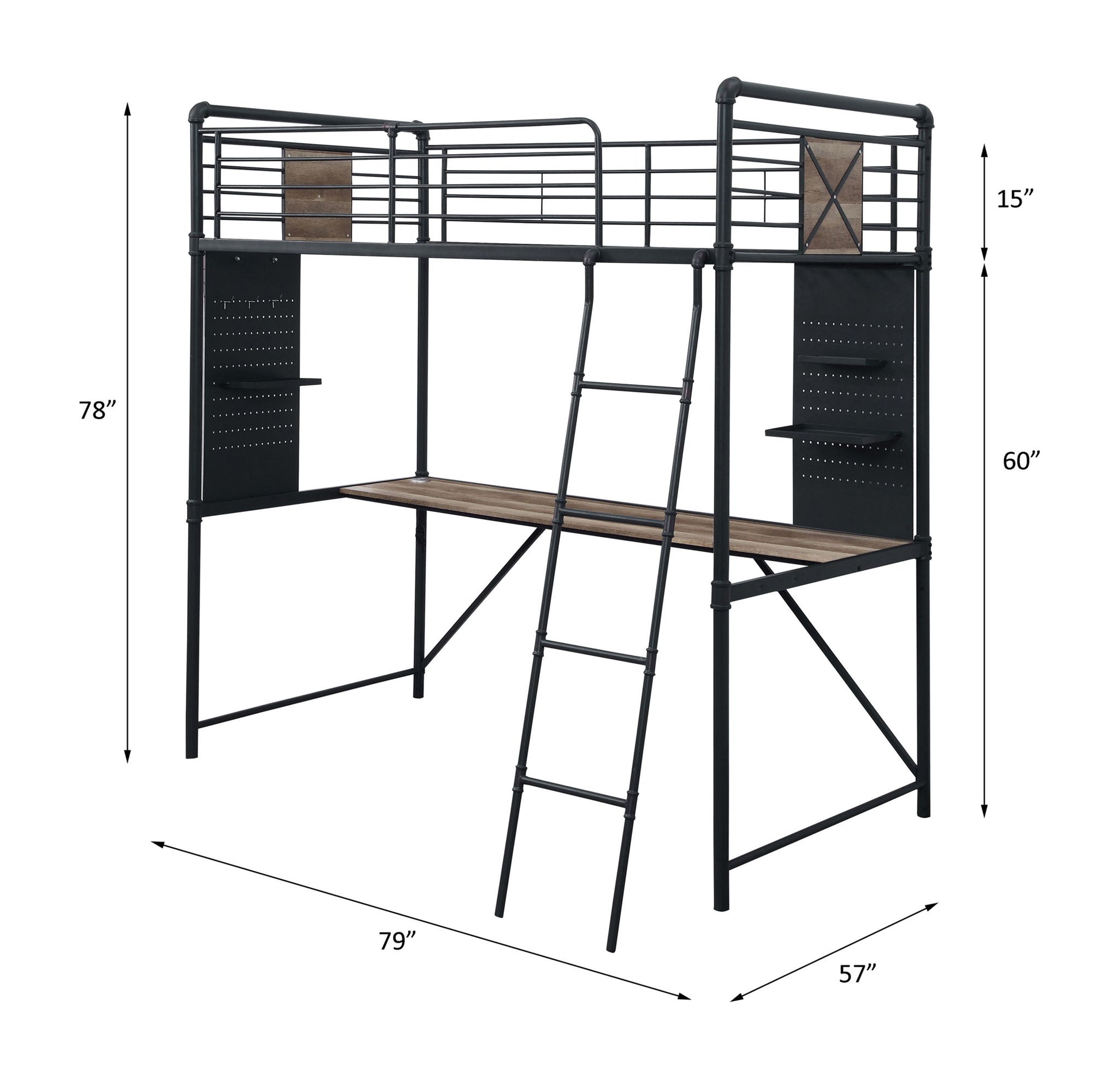 Cordelia - Twin Loft Bed With Desk - Antique Oak, Sandy Black & Dark Bronze Hand-Brushed