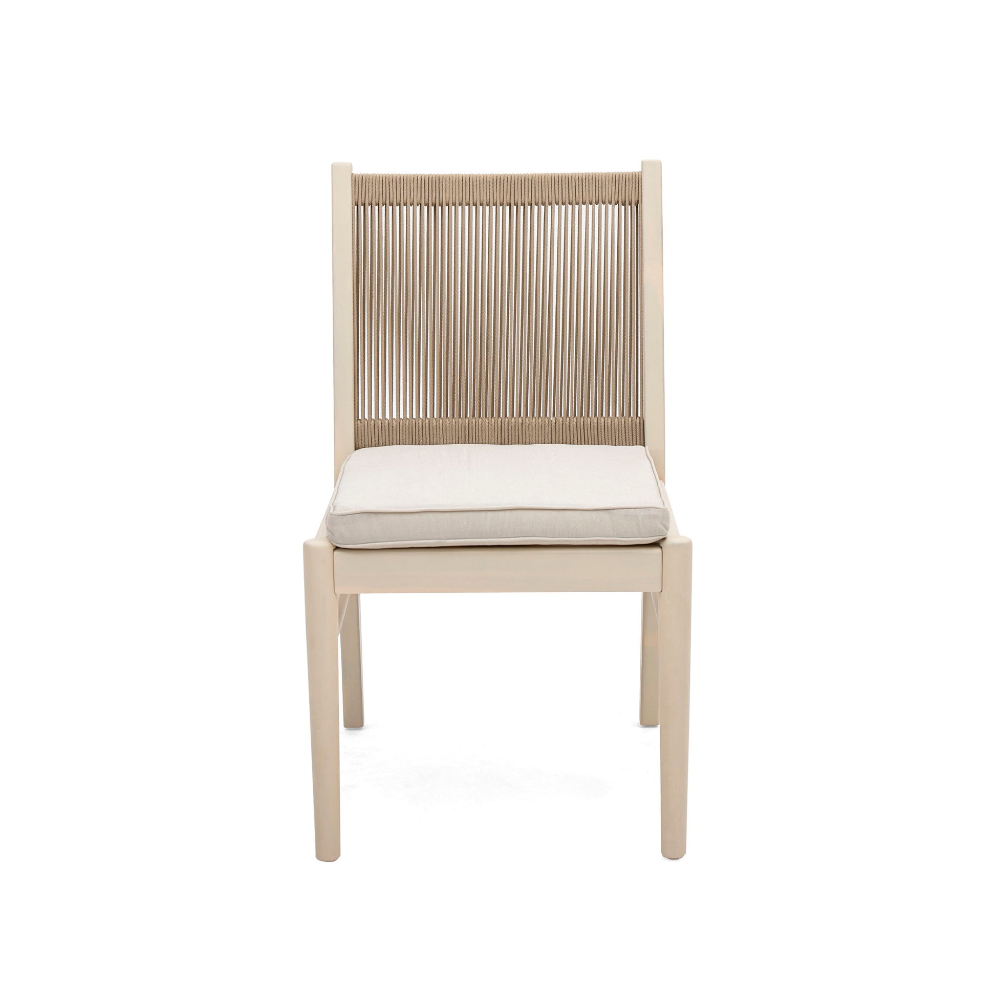 - SUPERIOR BUILD: With its Acacia Wood frame and woven rope, these armless chairs combine stability and durability, perfect for spaces seeking a blend of functionality and aesthetic appeal.