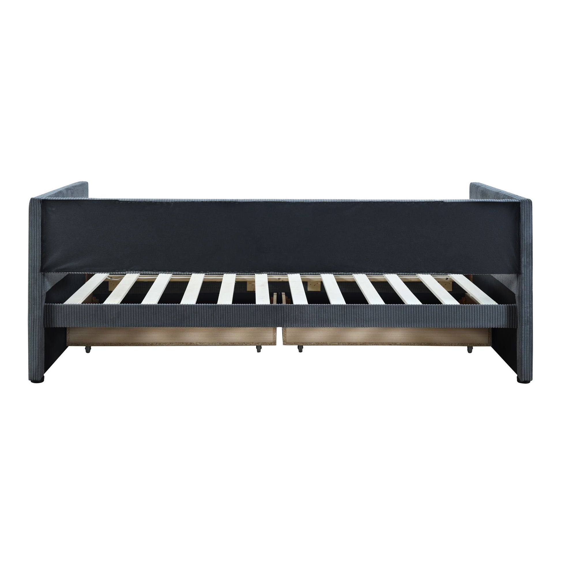 Twin Size Corduroy Daybed With Two Drawers And Slat - Gray