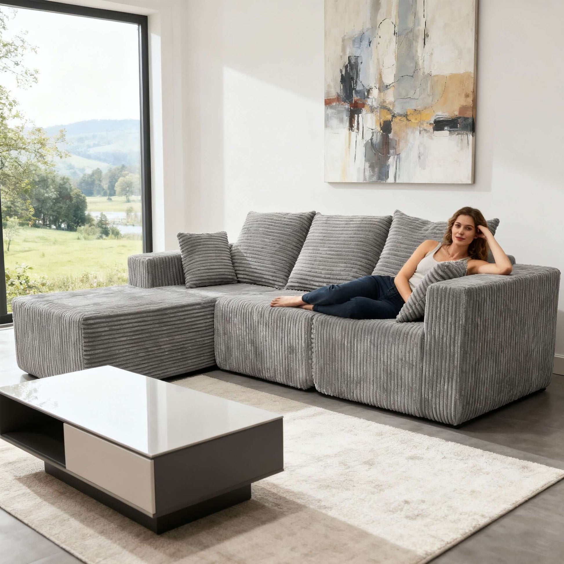 Corner Combination Sofa Sectional Couch With Soft Plush Fabric