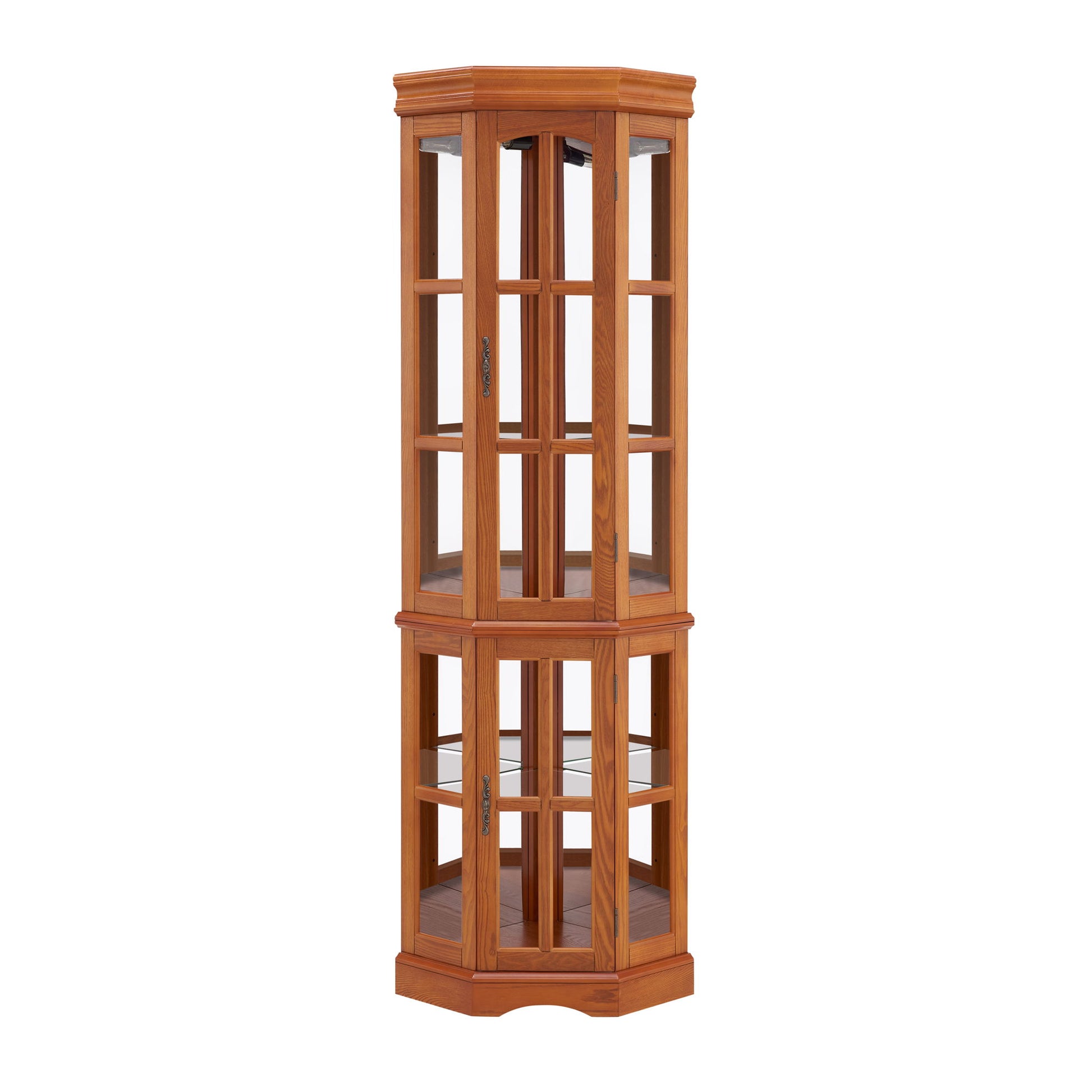 Corner Curio Cabinet With 5 Shelves And Lighting System (E26 Light Bulb Not Included) - Oak