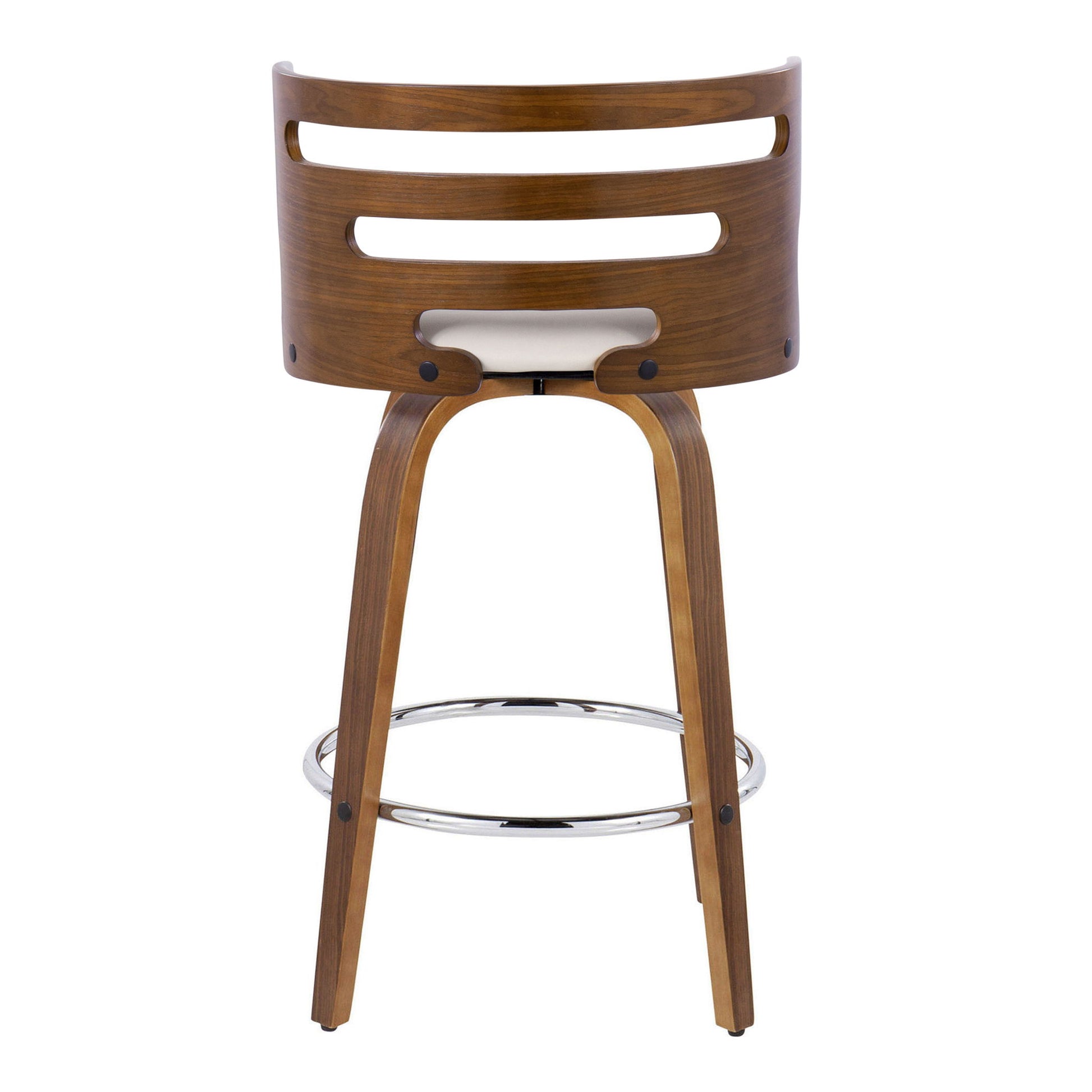 Cosini - Mid-Century Modern Fixed Height Barstool With Swivel With Round Footrest (Set of 2) - Walnut / Cream
