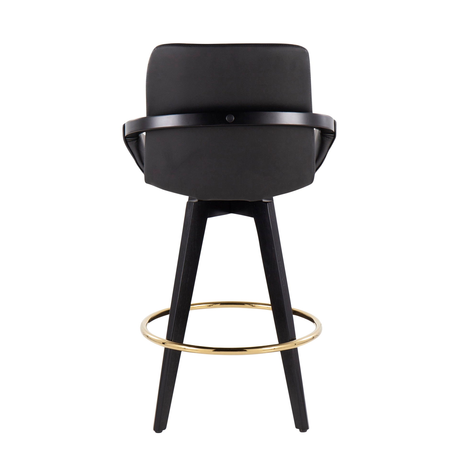 - Contemporary Design: The Cosmo Counter Stool by LumiSource features a modern aesthetic, combining a sleek faux leather seat with a stylish wood armrest and frame. Its design is further enhanced by a chic gold footrest, creating a sophisticated look for any space.