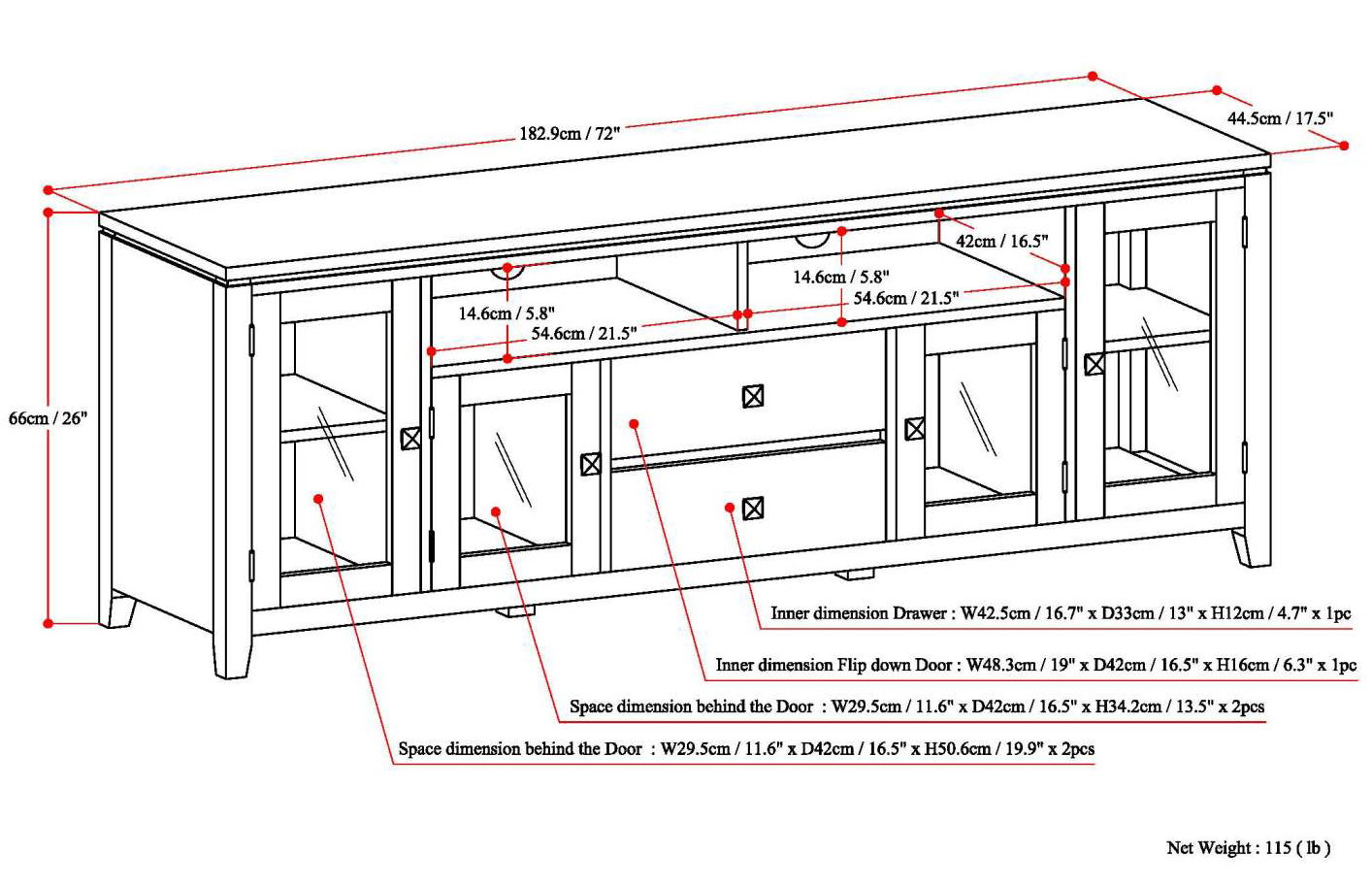 72.0"W x 17.5"D x 26.0"H - 104.7 lb