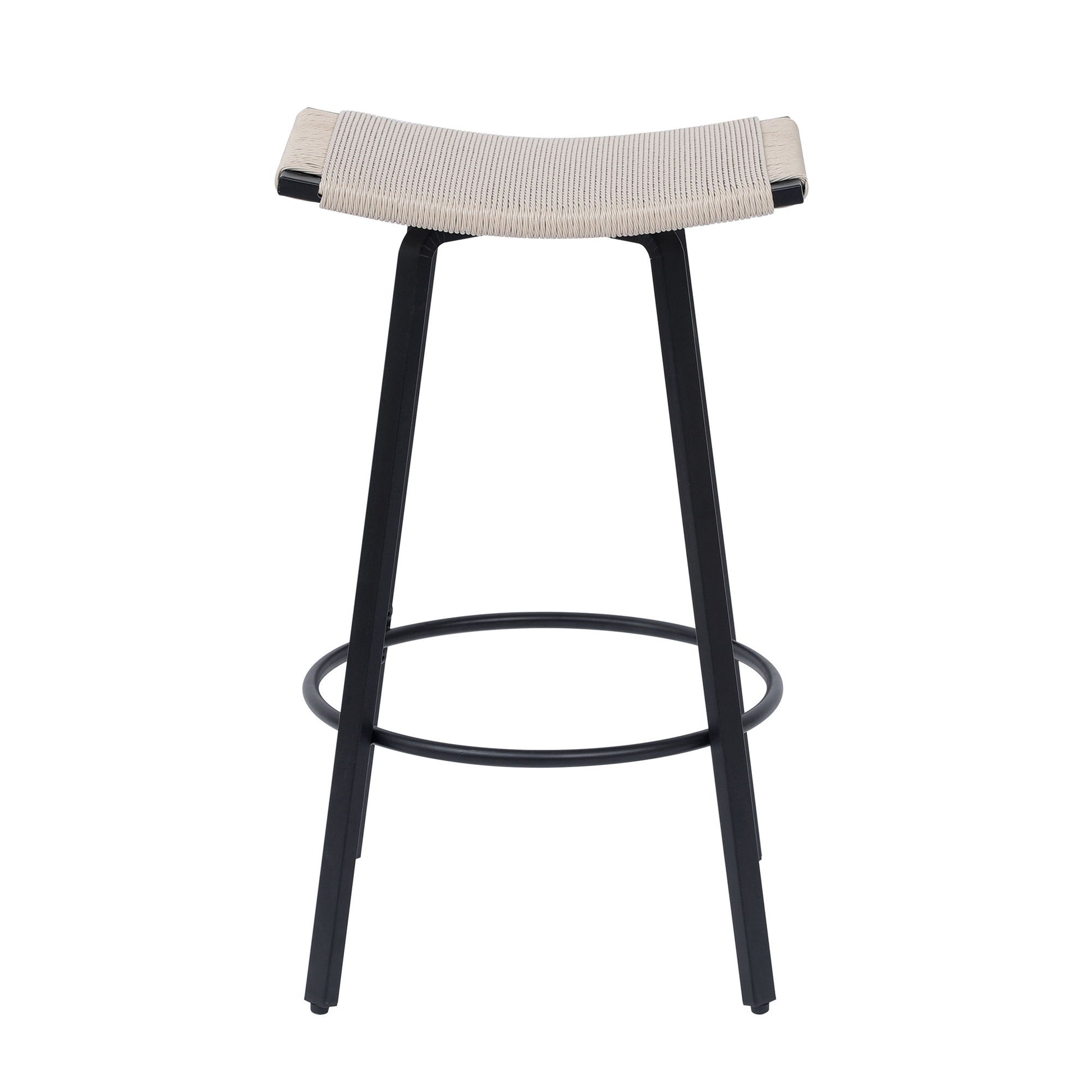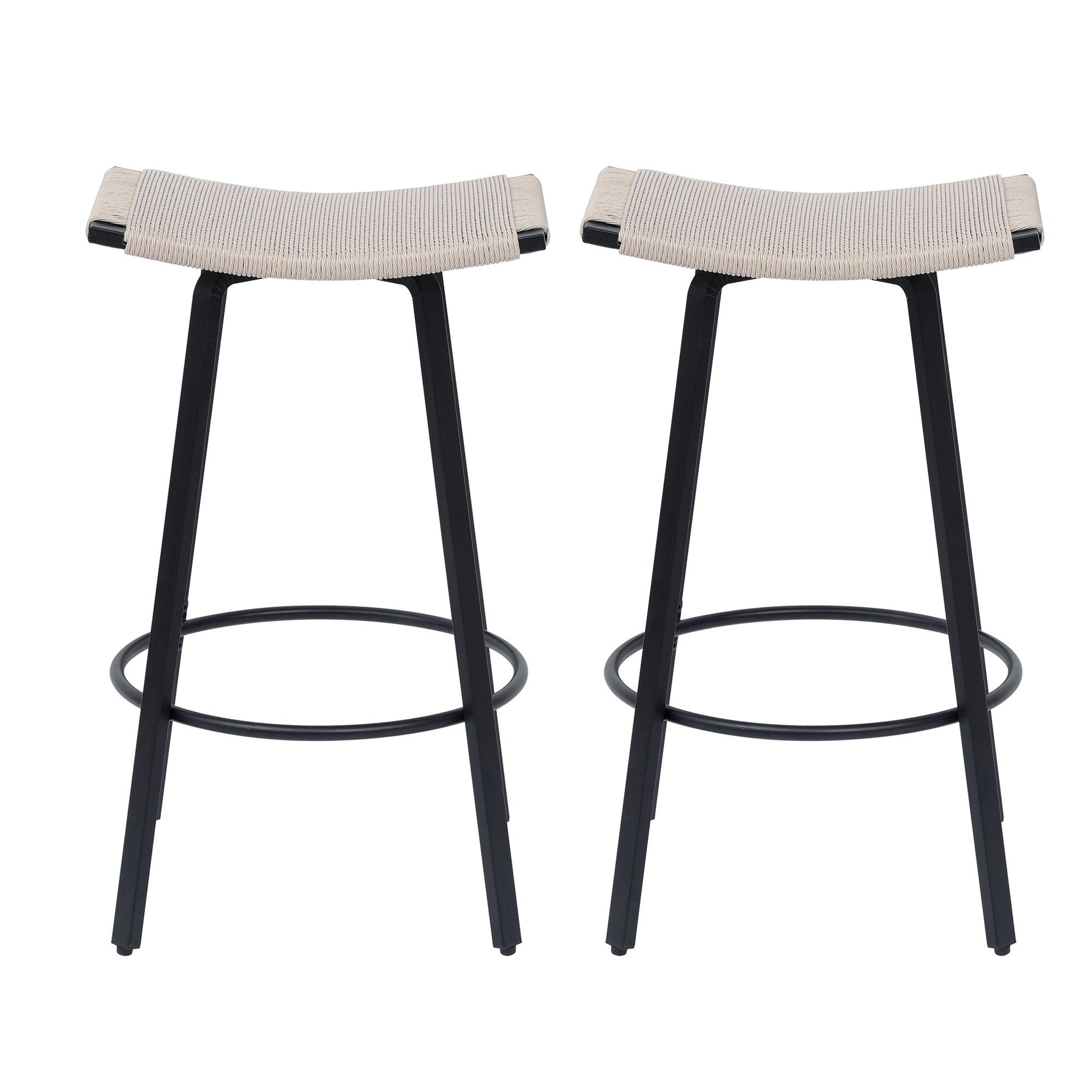 Counter Height Bar Stools Backless Handwoven Kitchen Dining Chairs With Round Footrest (Set of 2) Weaving Pub Stoo - Creamy White