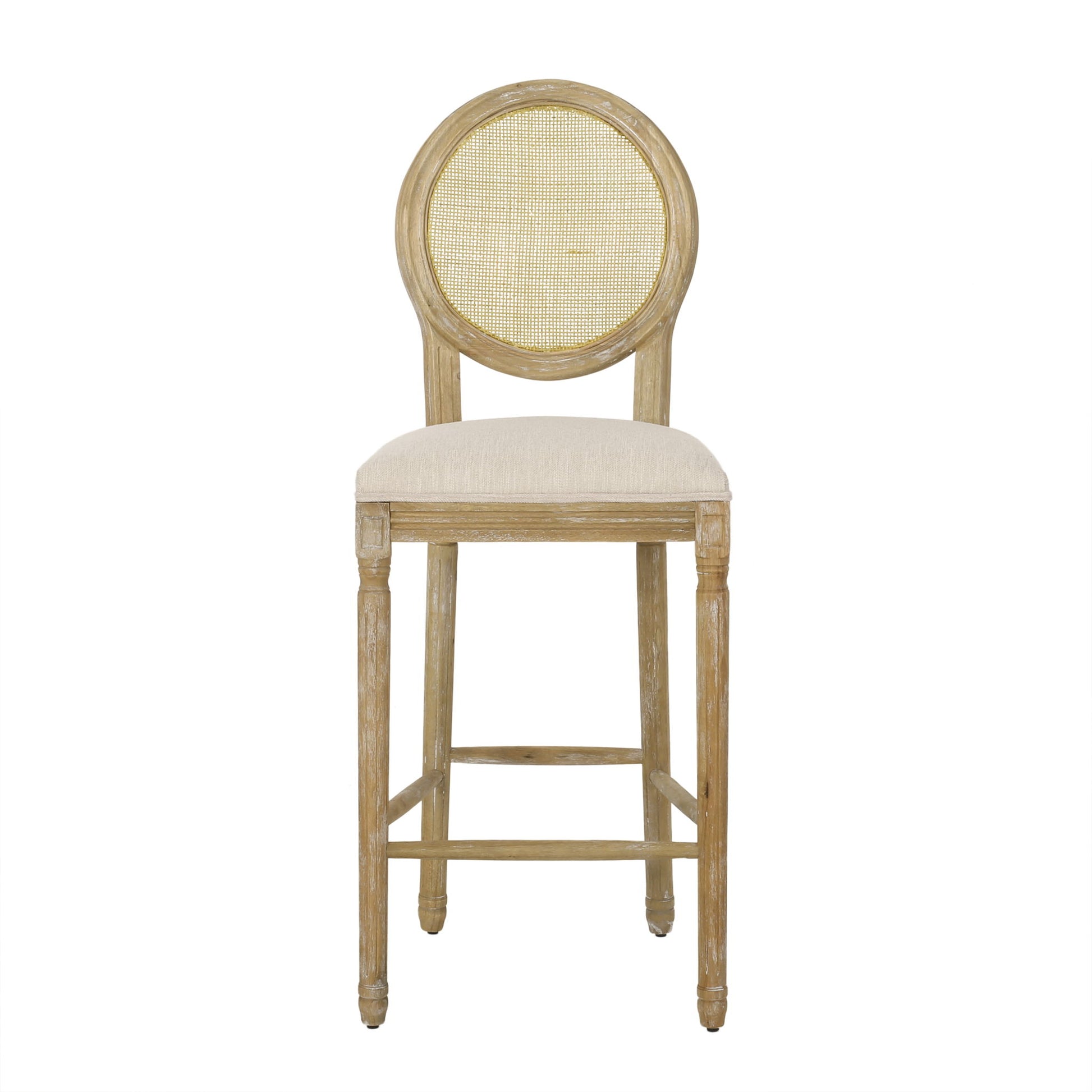Country Chic Bar Stools (Set of 2) With Rattan Backrest And Upholstered Seat - Beige / Natural