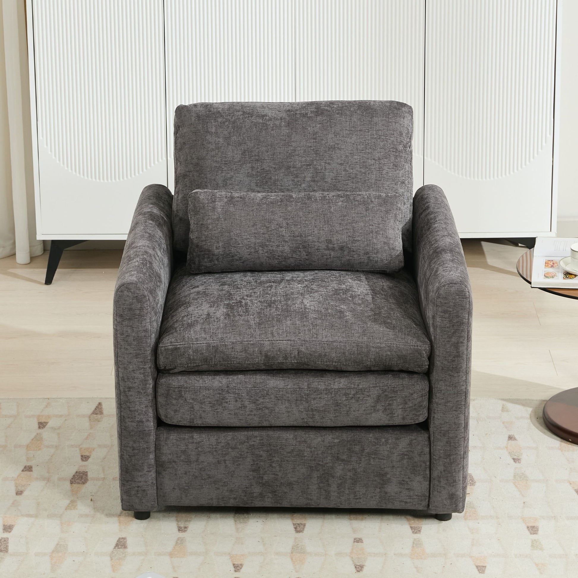 - Premium Chenille Fabric: This armchair is crafted with soft and luxurious chenille fabric, offering a plush and smooth texture that enhances comfort. The high-quality material is durable, resistant to wear, and easy to maintain, making it an ideal addition to any living space.