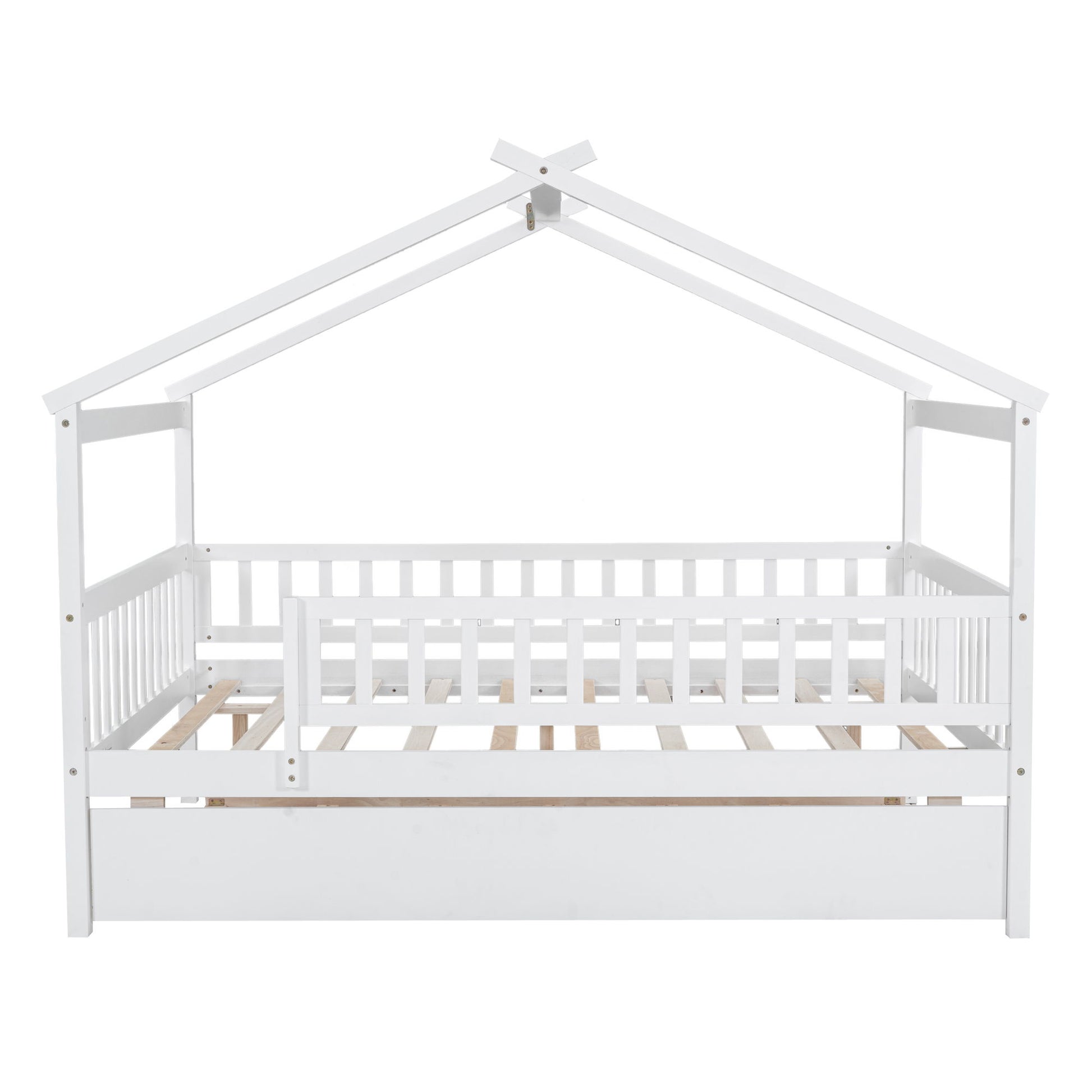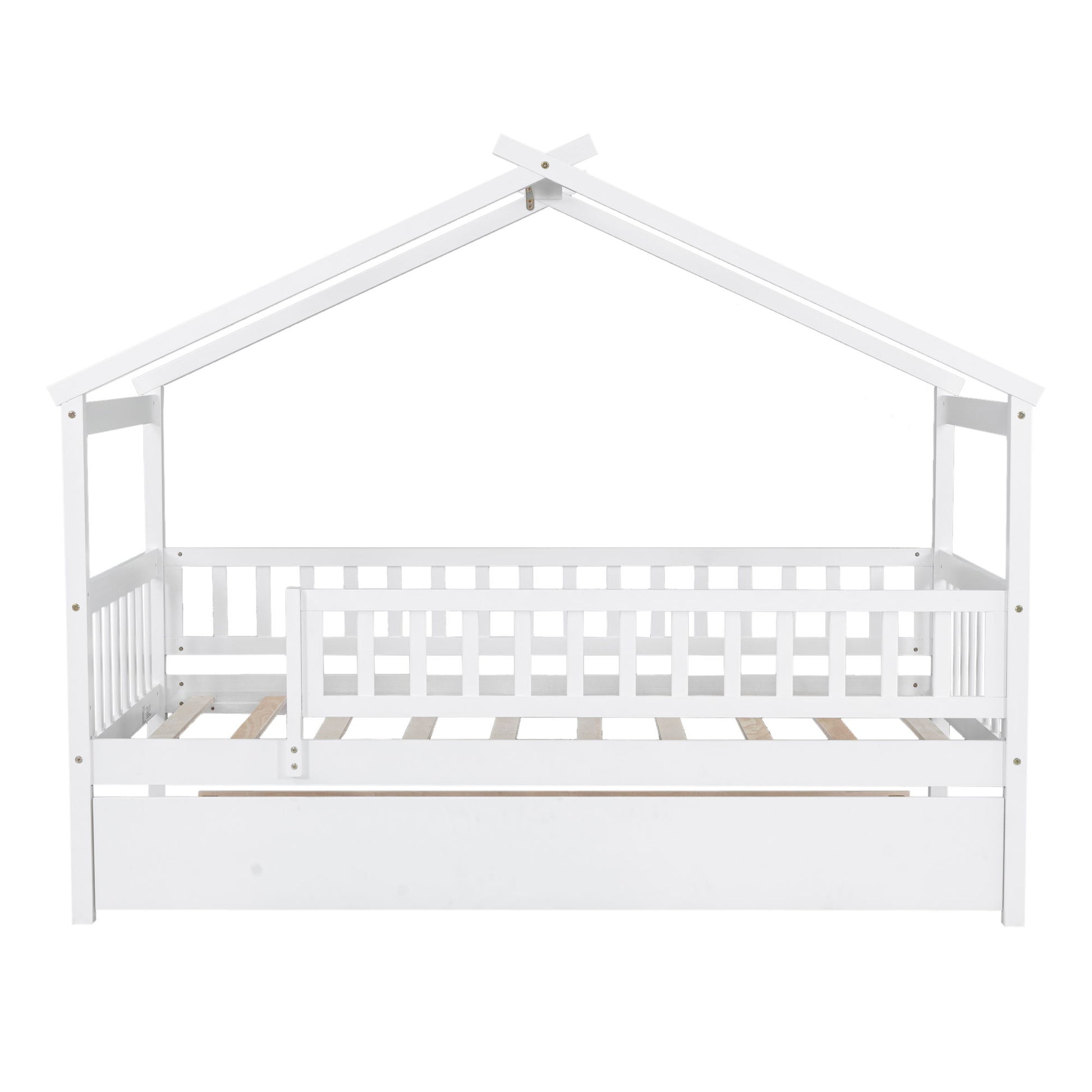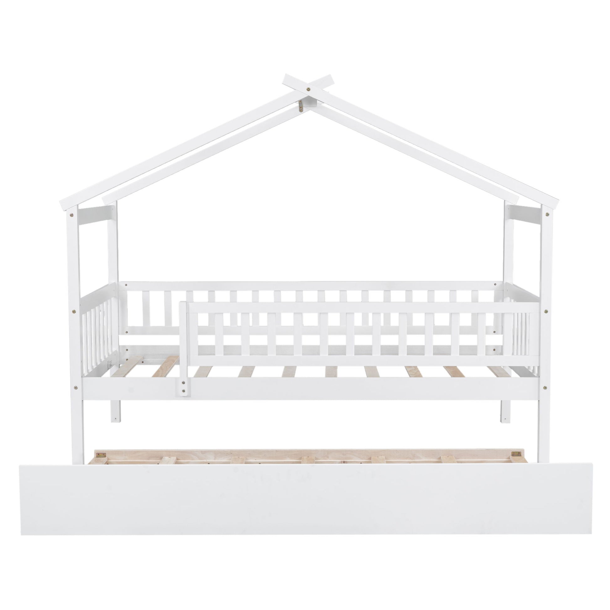 Spacious Storage: The wooden house platform bed with a trundle offers extra sleeping space for sleepovers. Simply roll it out when needed and tuck it away when not in use, making it a perfect space-saving solution.