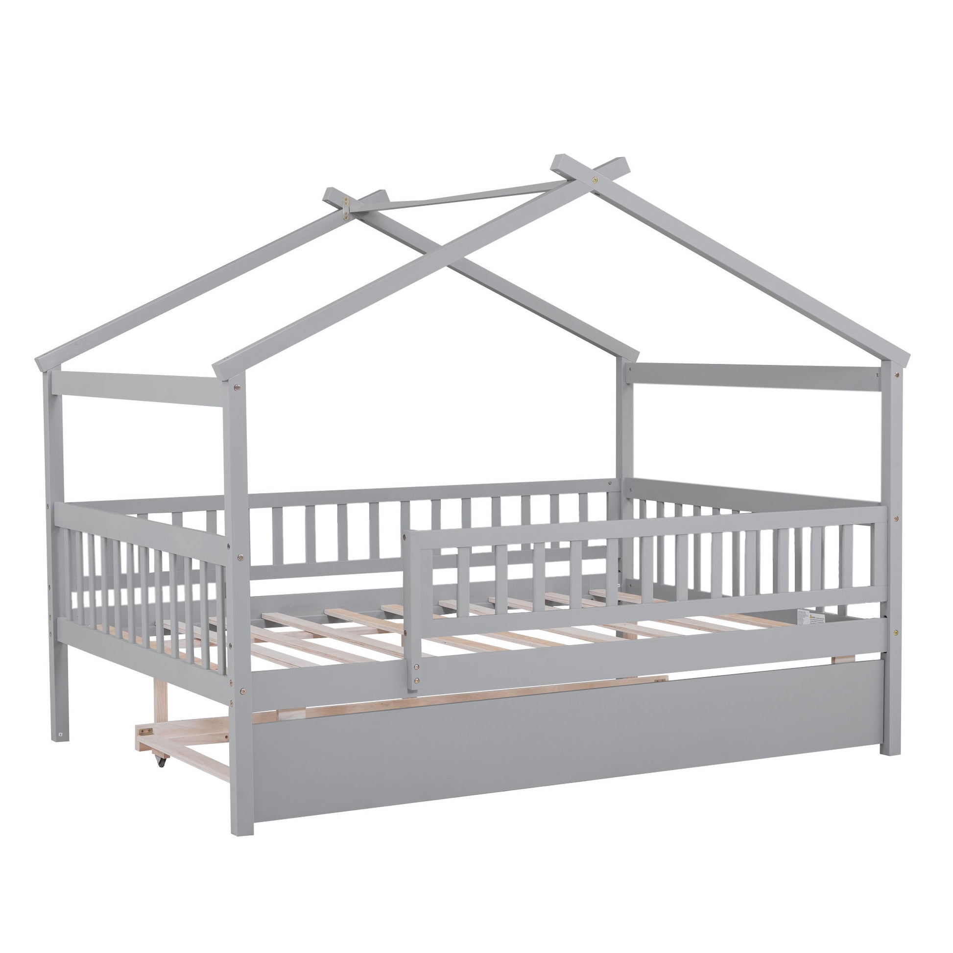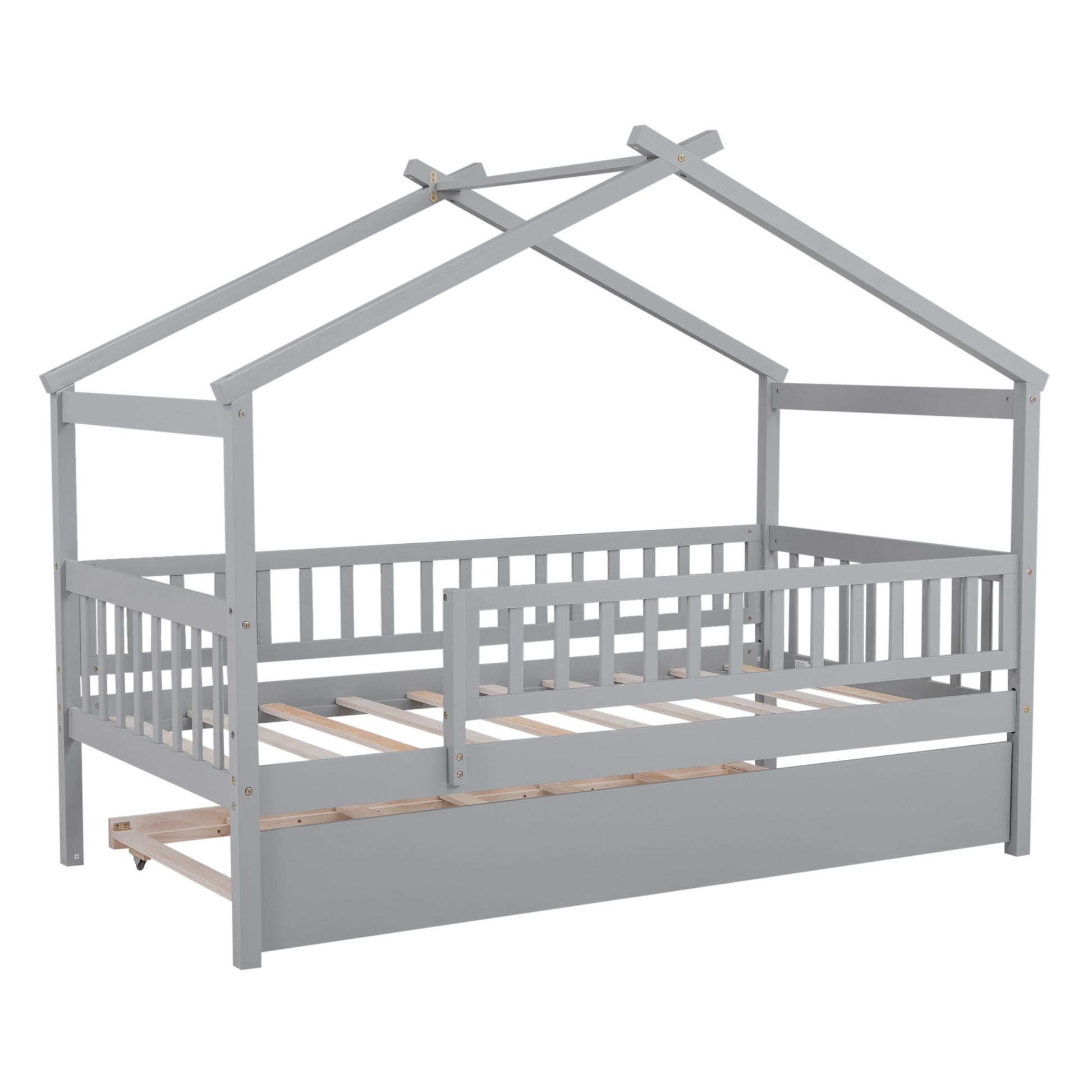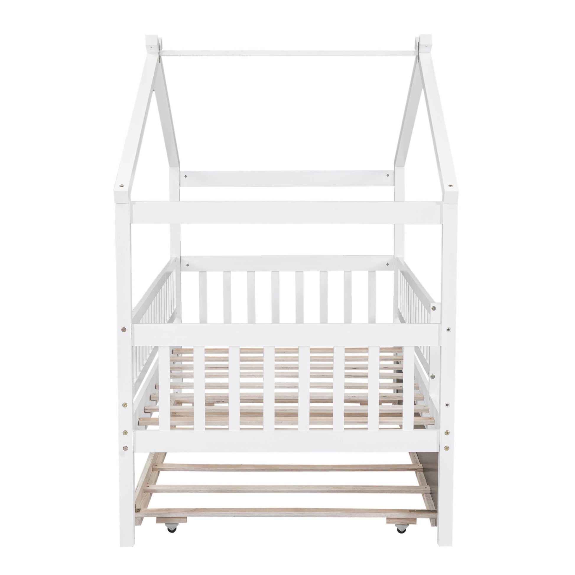 Spacious Storage: The wooden house platform bed with a trundle offers extra sleeping space for sleepovers. Simply roll it out when needed and tuck it away when not in use, making it a perfect space-saving solution.