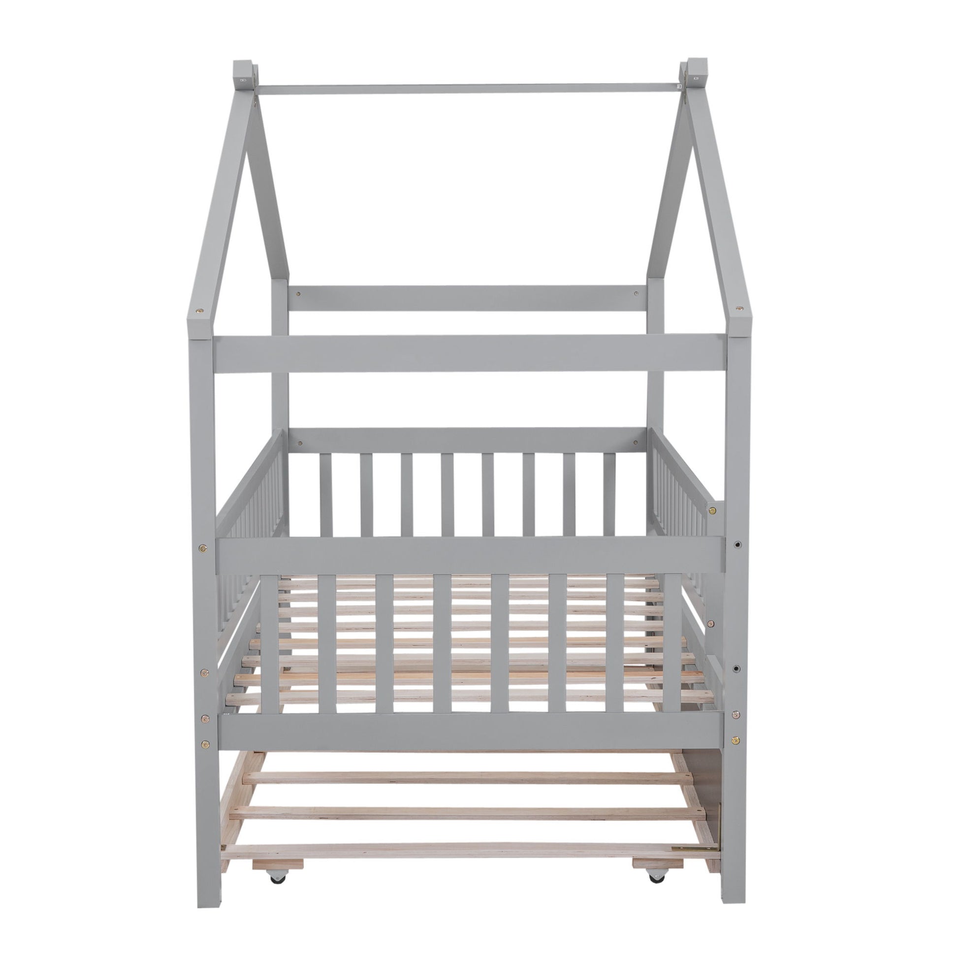 Twin Size House Bed & Twin Size Trundle - Walnut