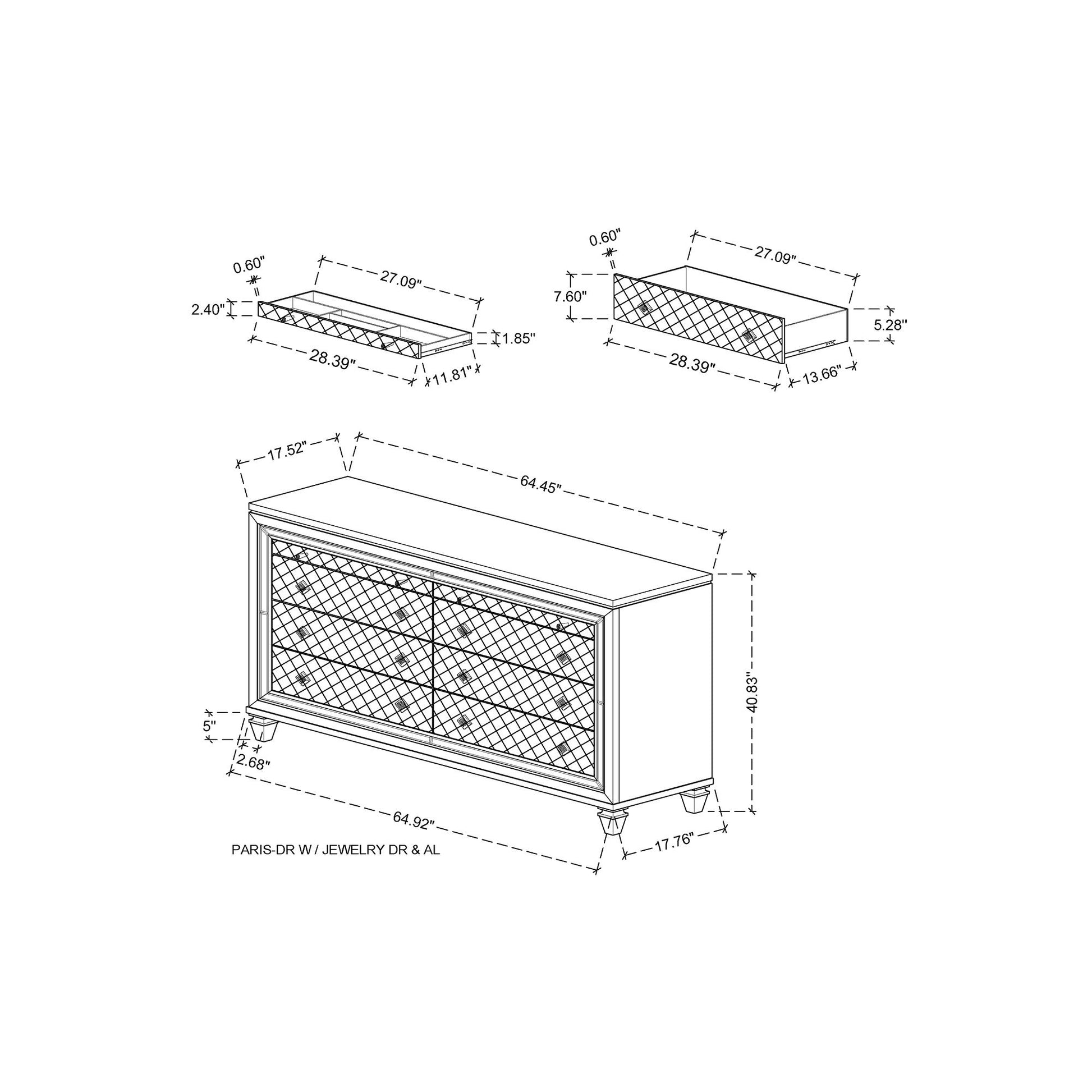 - Specialized Drawers: Two felt lined jewelry drawers for organizing accessories.