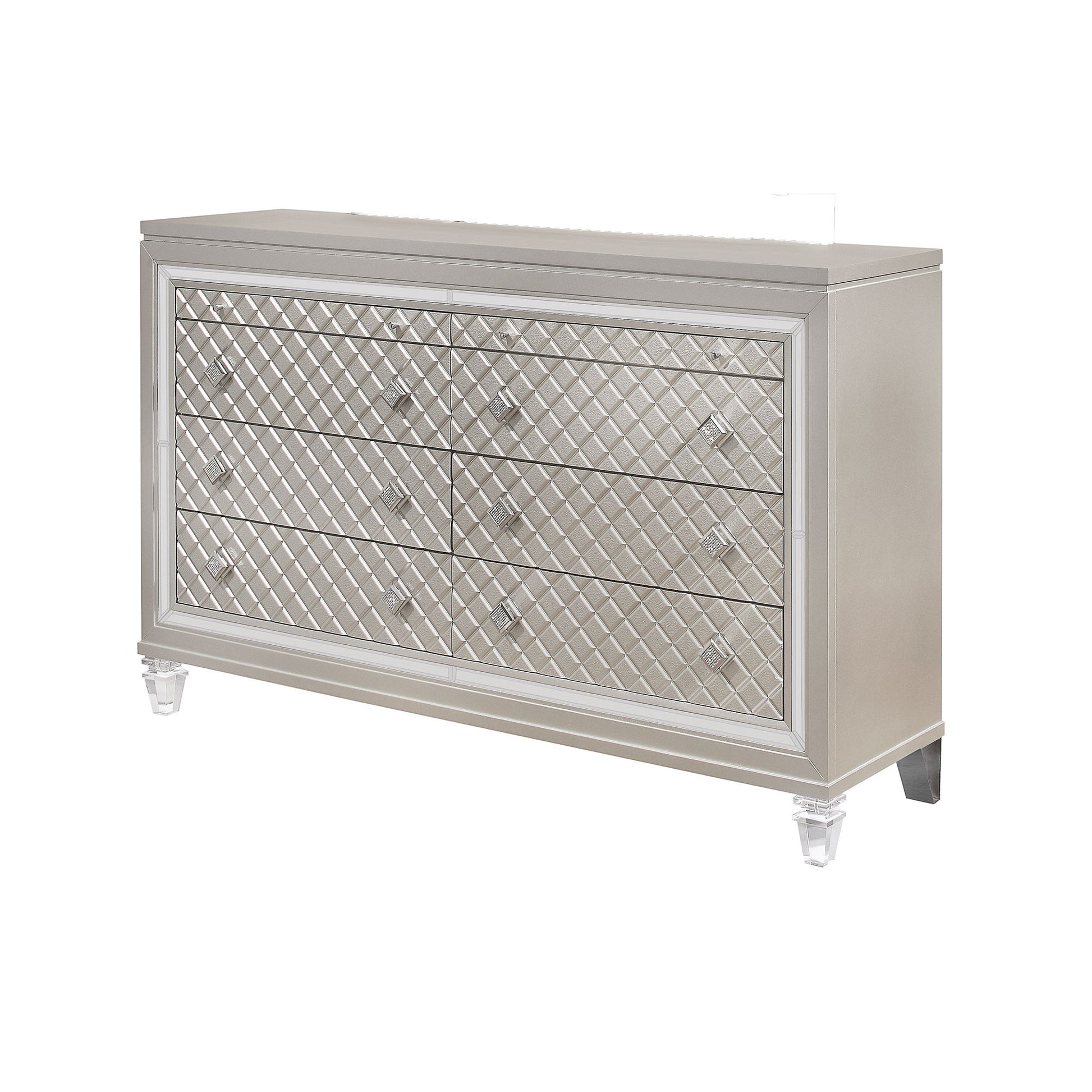 - Elegant Design: Jewel embellished hardware and mirror accents add a touch of luxury.