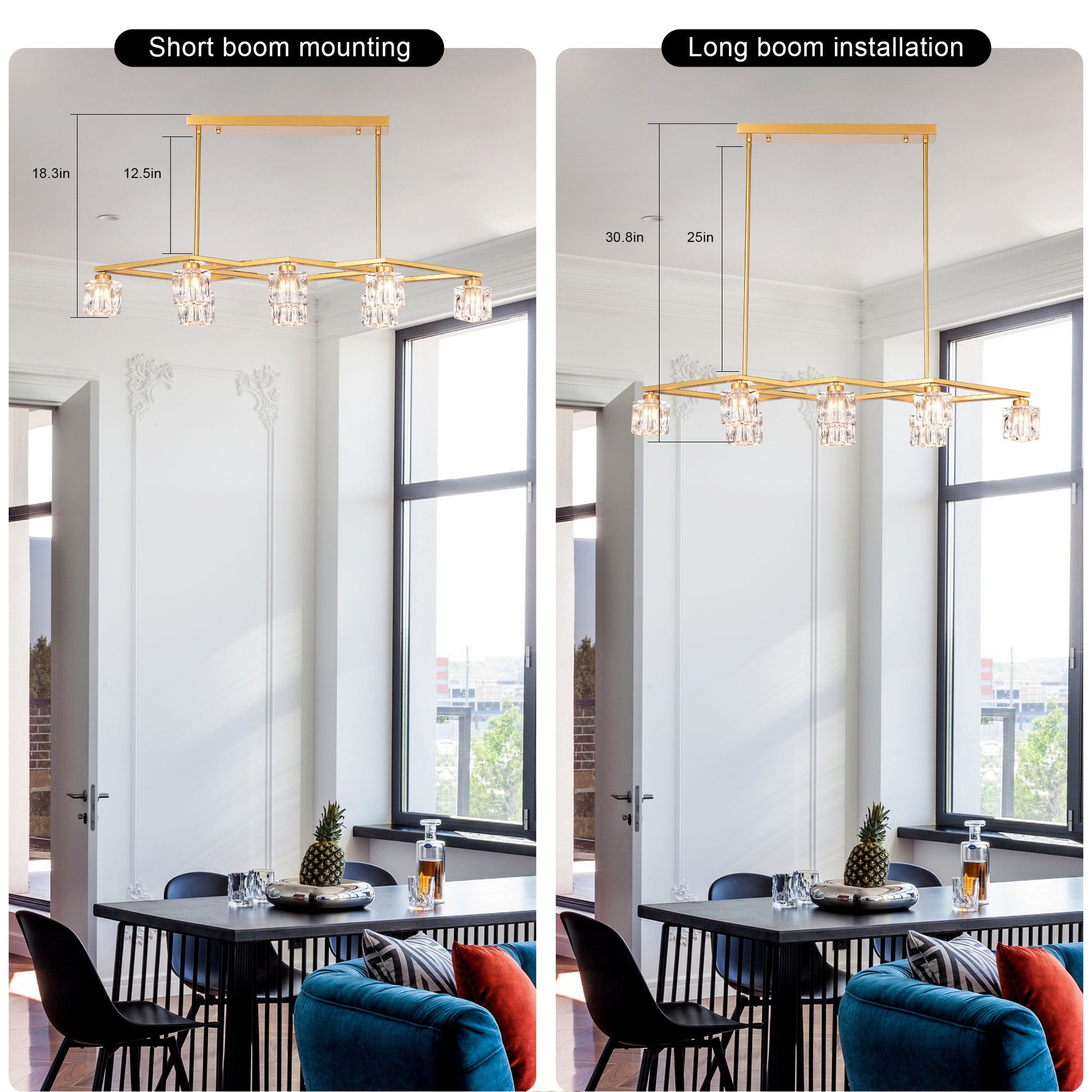 - Adjustable Height: Equipped with four rods, each measuring 30.5 cm, the chandelier's height can be adjusted to suit your decor needs. It is compatible with flat, sloped, or vaulted ceilings.