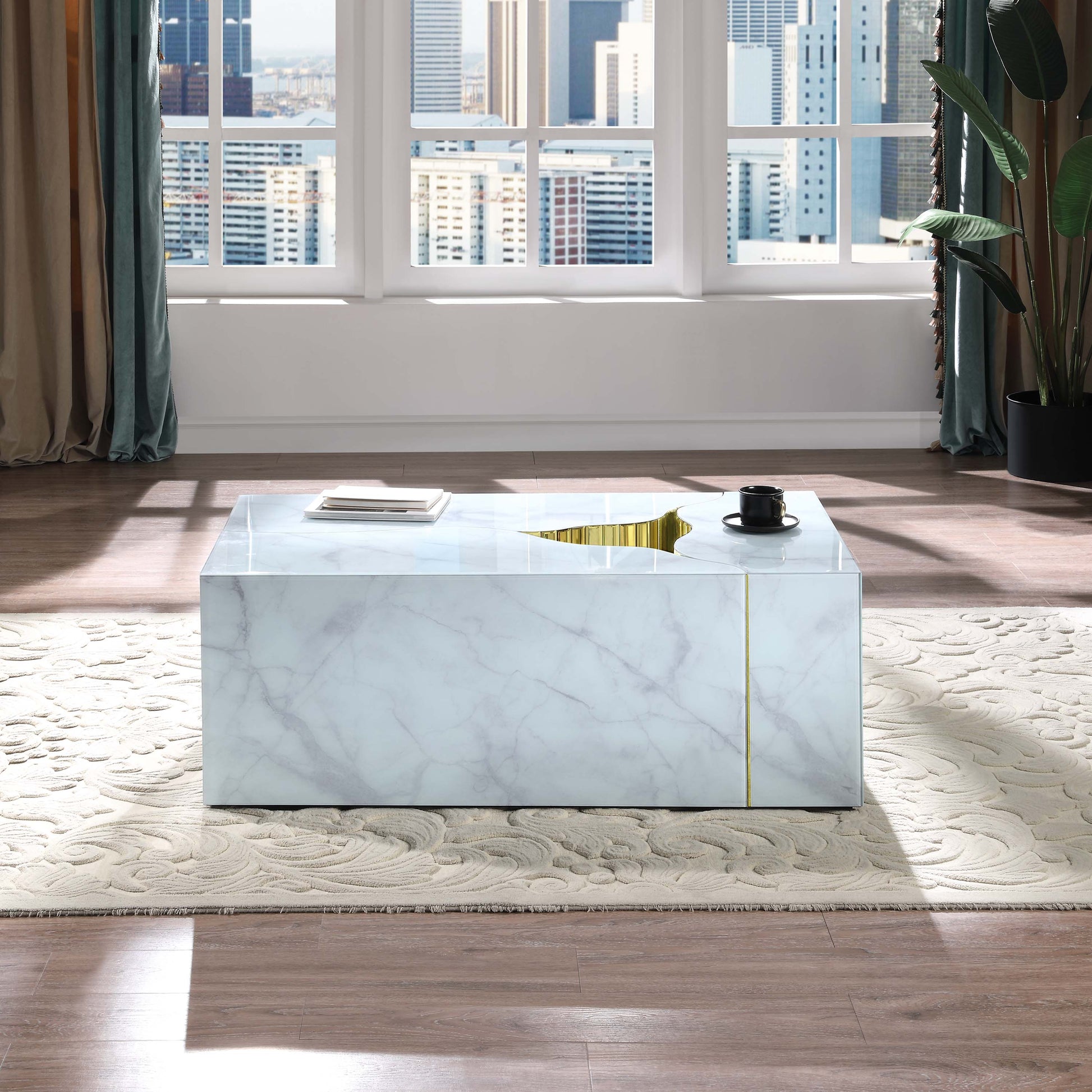 Add a touch of modern sophistication to your living space with this stunning marble-print coffee table. Featuring a sleek blend of MDF and glass, this table boasts a printed black or white marble top, offering an elegant yet durable design for your home. The spacious 47-inch length and 27.6-inch depth provide plenty of surface area for books, décor, or beverages. Standing at a comfortable 17.5 inches tall, it fits seamlessly into any room, creating a refined focal point. Best of all, there’s no assembly required, so you can enjoy its timeless beauty immediately.