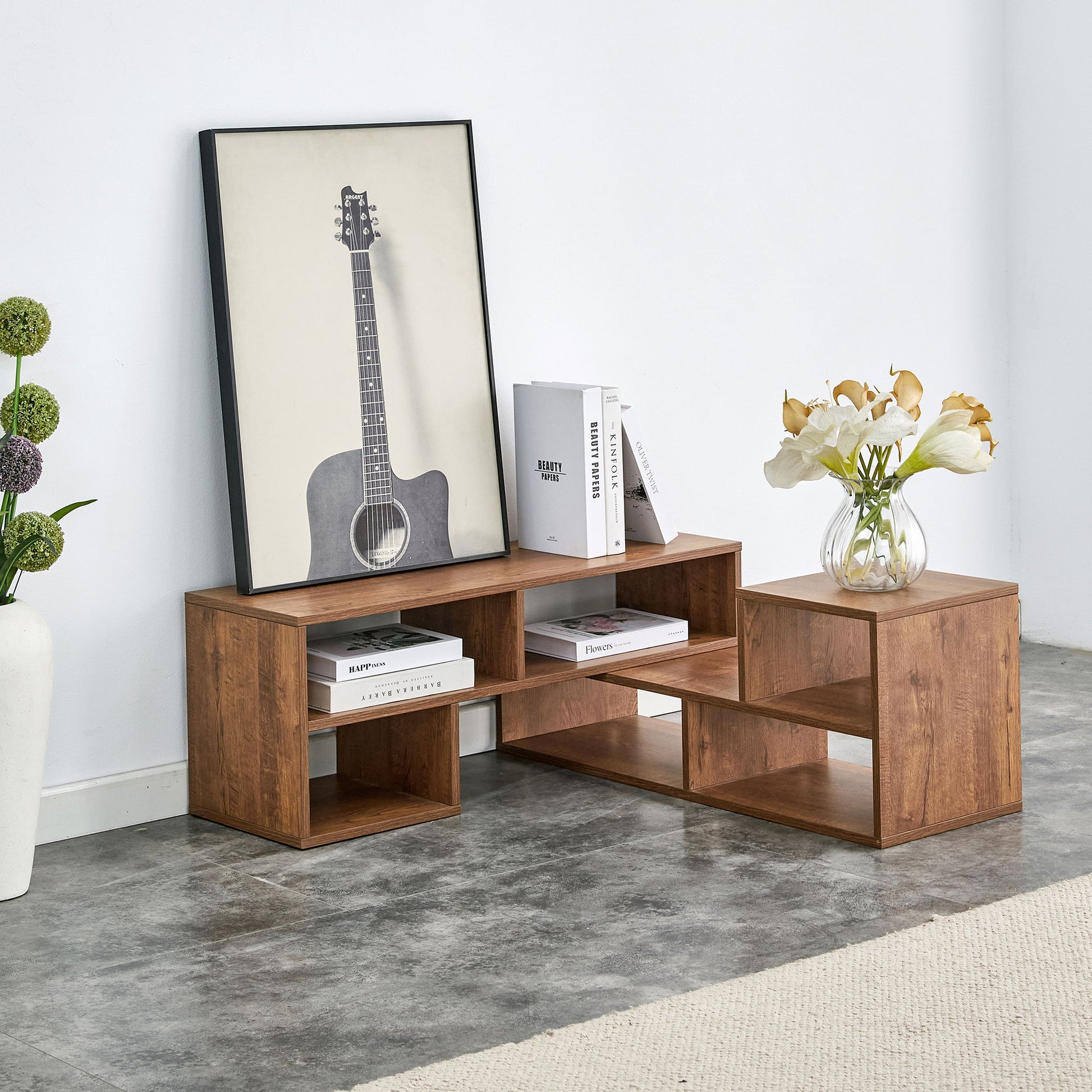 Modern 2 Piece Cube TV Stand With Open Storage, L Shaped Design - Walnut
