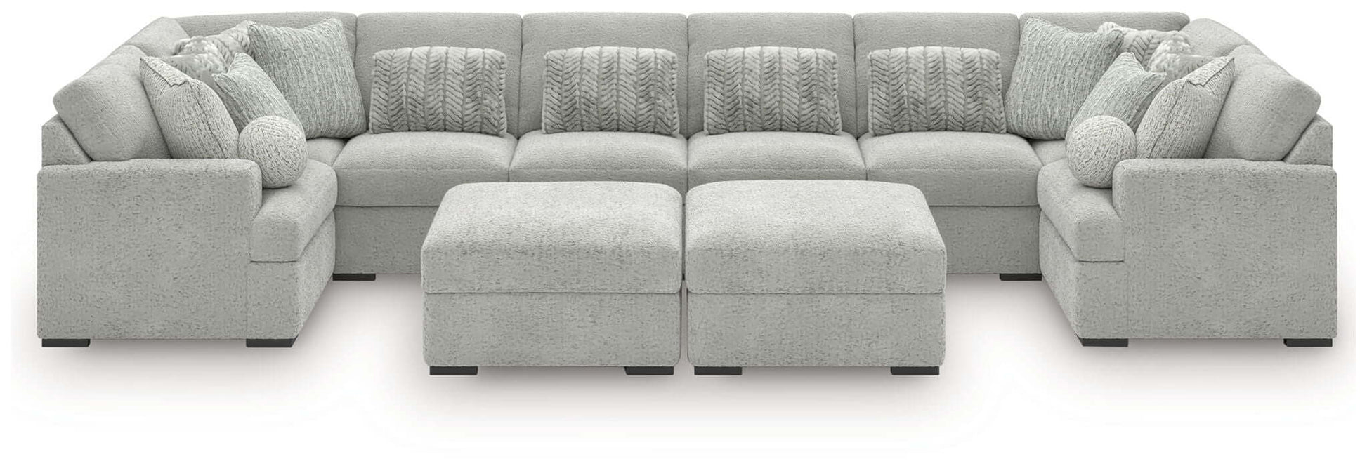 Cuddle Plush - 10-Piece Sectional With 2 Oversized Ottomans - Arctic