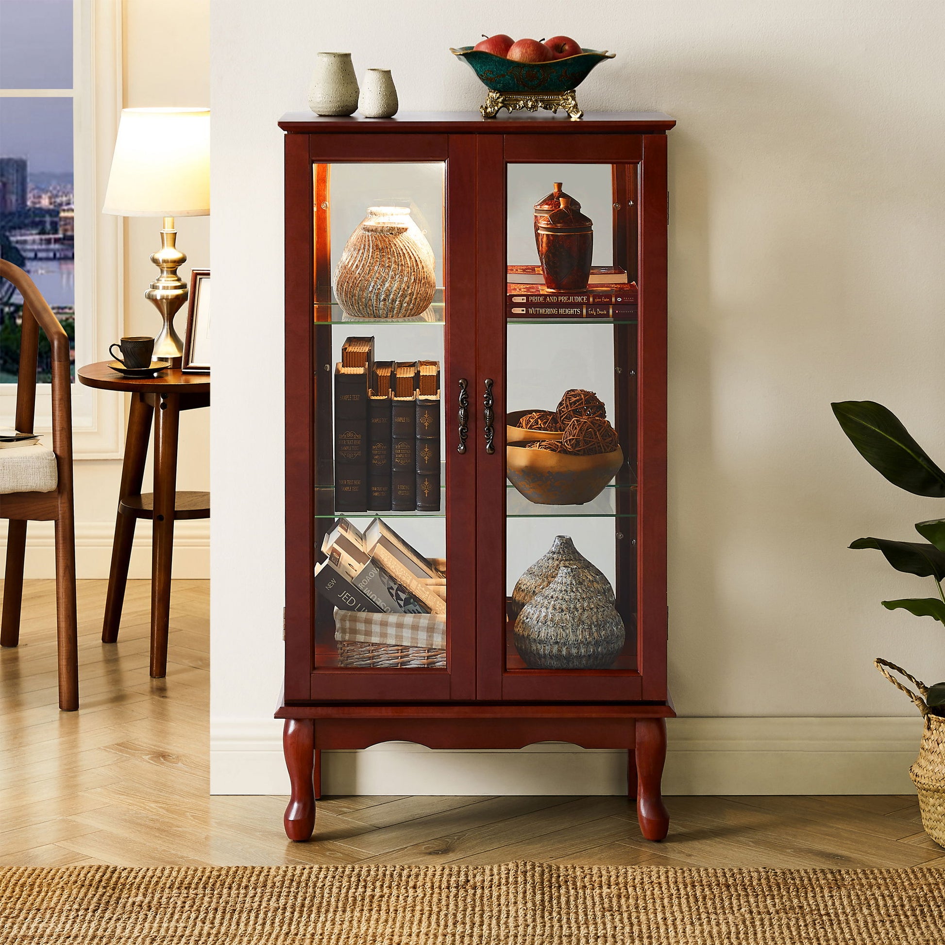 Curio Cabinet Lighted Curio Diapaly Cabinet With Adjustable Shelves And Mirrored Back Panel, Tempered Glass Doors 3 Tier, (E26 Light Bulb Not Included) - Cherry
