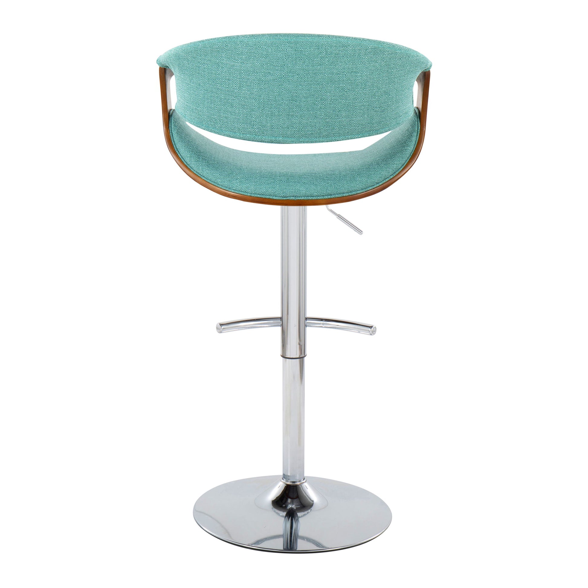 Curvo - Mid-Century Modern Adjustable Barstool With Swivel With Rounded T Footrest (Set of 2) - Chrome / Walnut / Teal