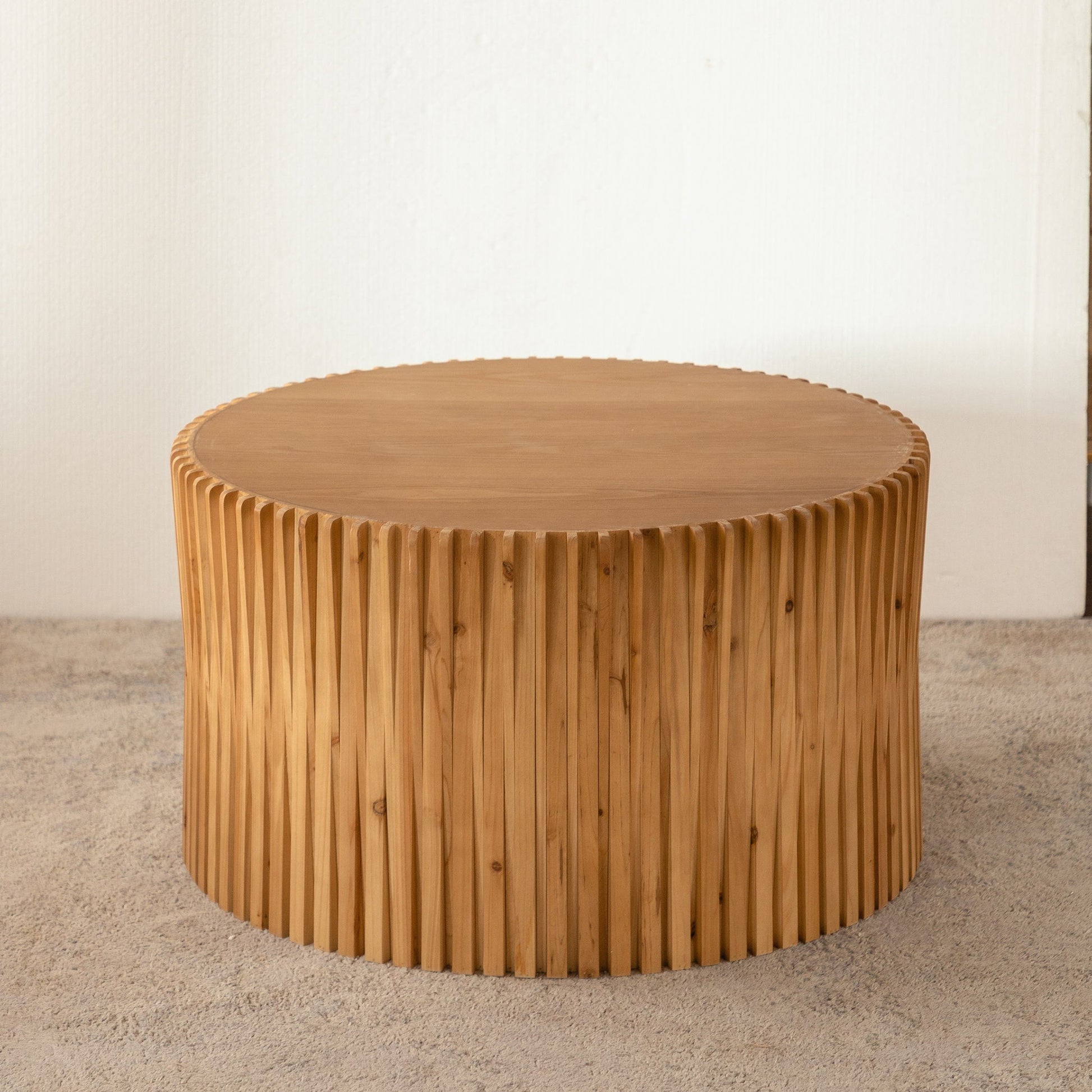 Cylindrical Coffee Table With Vertical Texture Relief - Natural