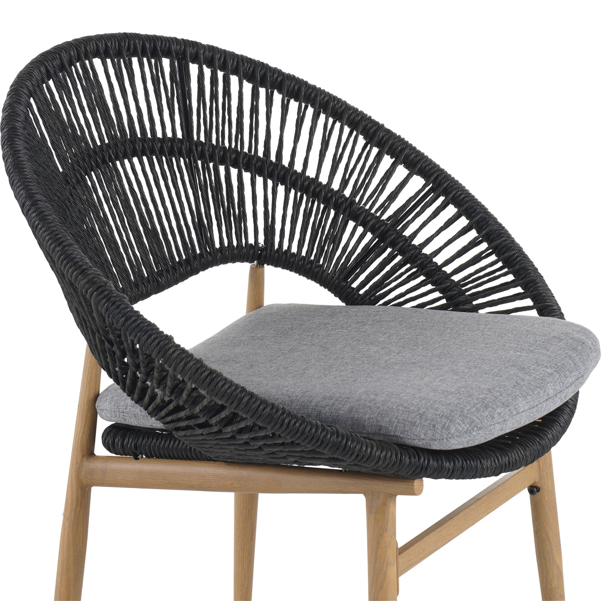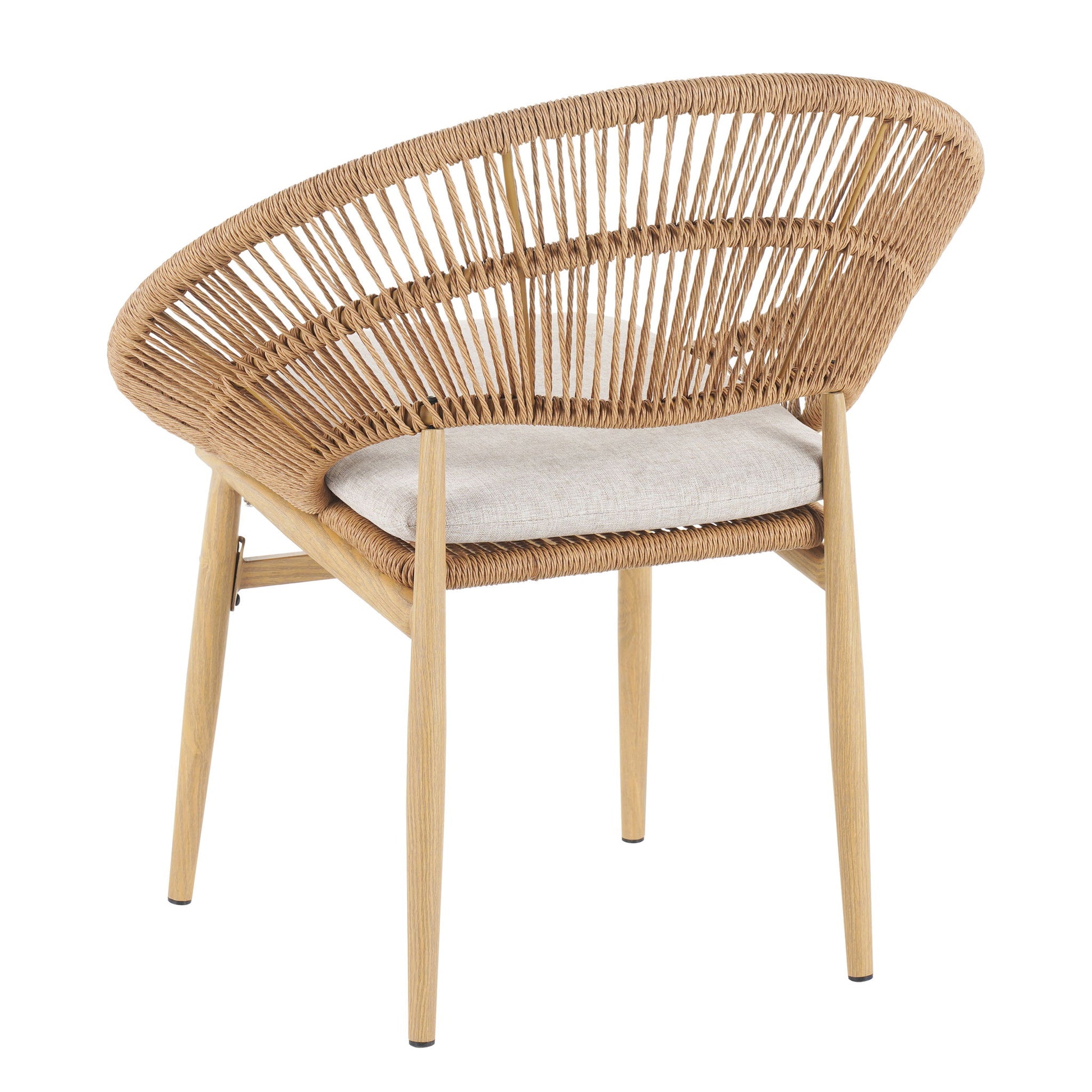 - Textured Artisanal Charm: Handwoven with light- PE wicker in a twisted-rope pattern, the chair adds tactile depth and subtle movement to outdoor spaces. The weather-resistant synthetic wicker maintains flexibility and color vibrancy even under harsh UV exposure.