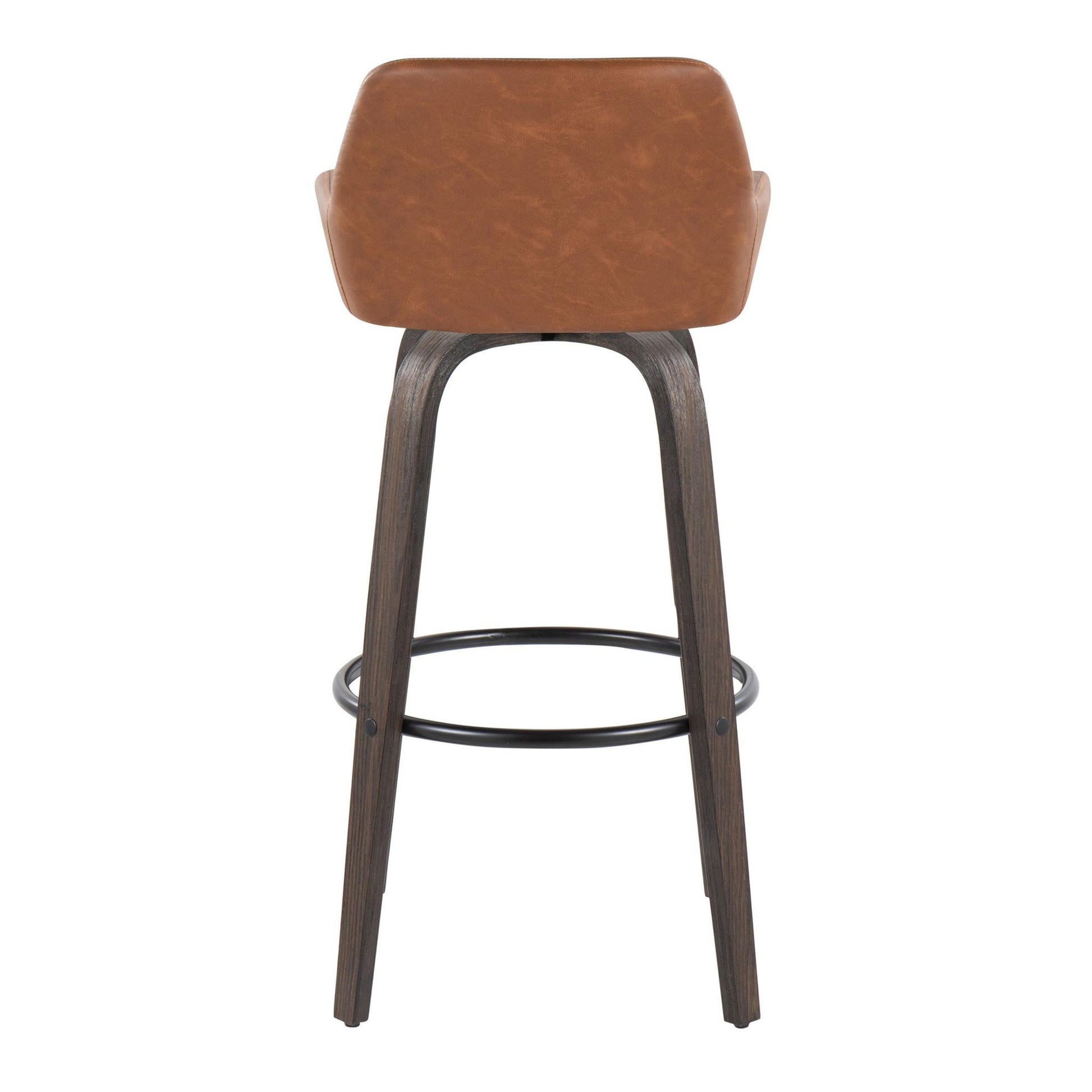 Daniella - Contemporary Fixed Height Barstool With Swivel With Round Footrest (Set of 2) - Walnut / Camel