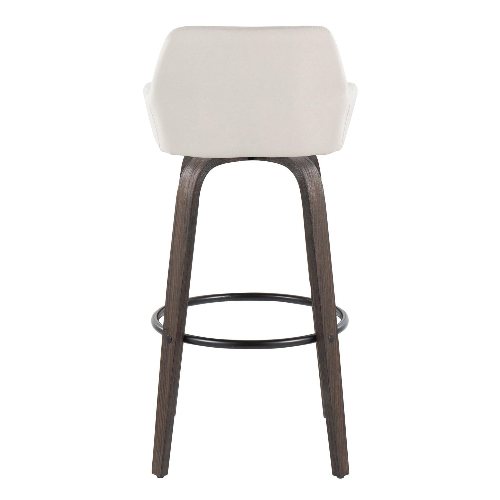 Daniella - Contemporary Fixed Height Barstool With Swivel With Round Footrest (Set of 2) - Walnut / Cream