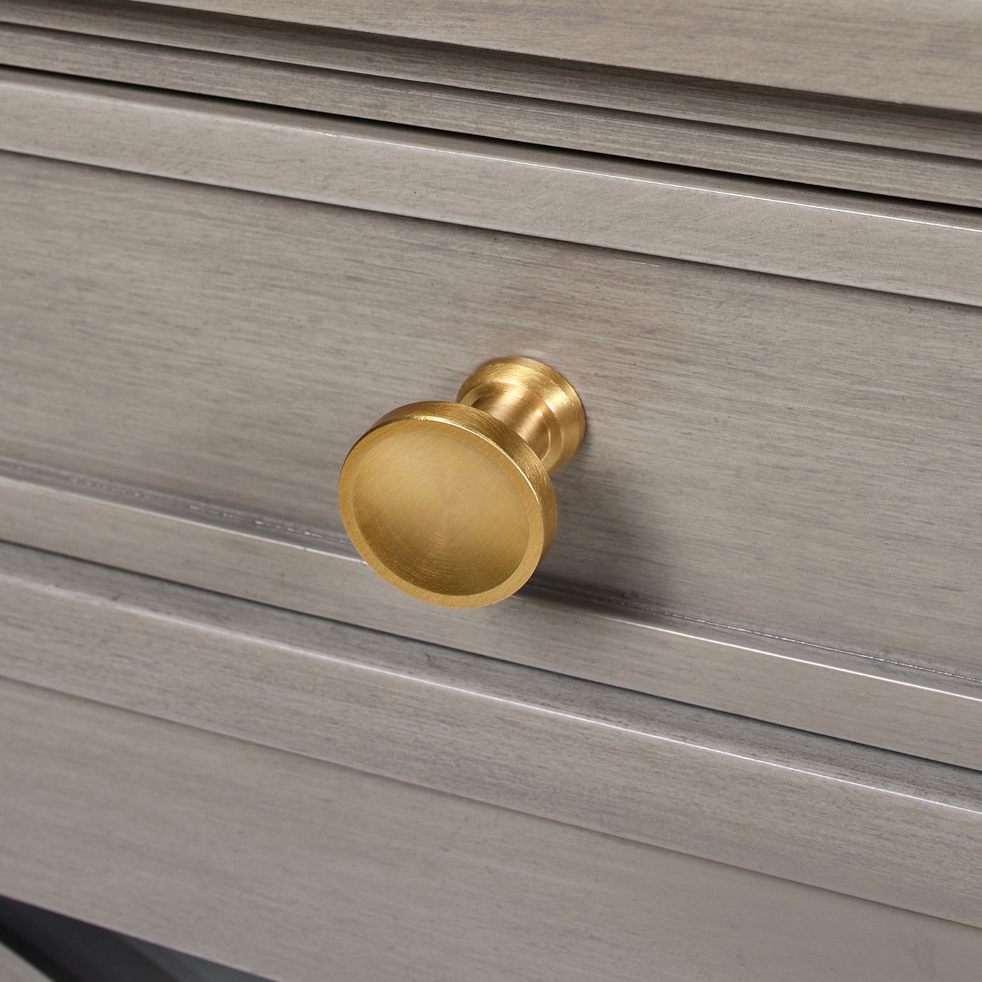 - Luxe Design: The stand is accented with satin gold hardware knobs and hand-painted gold accents along the wood trim, adding a touch of luxury to your living space.