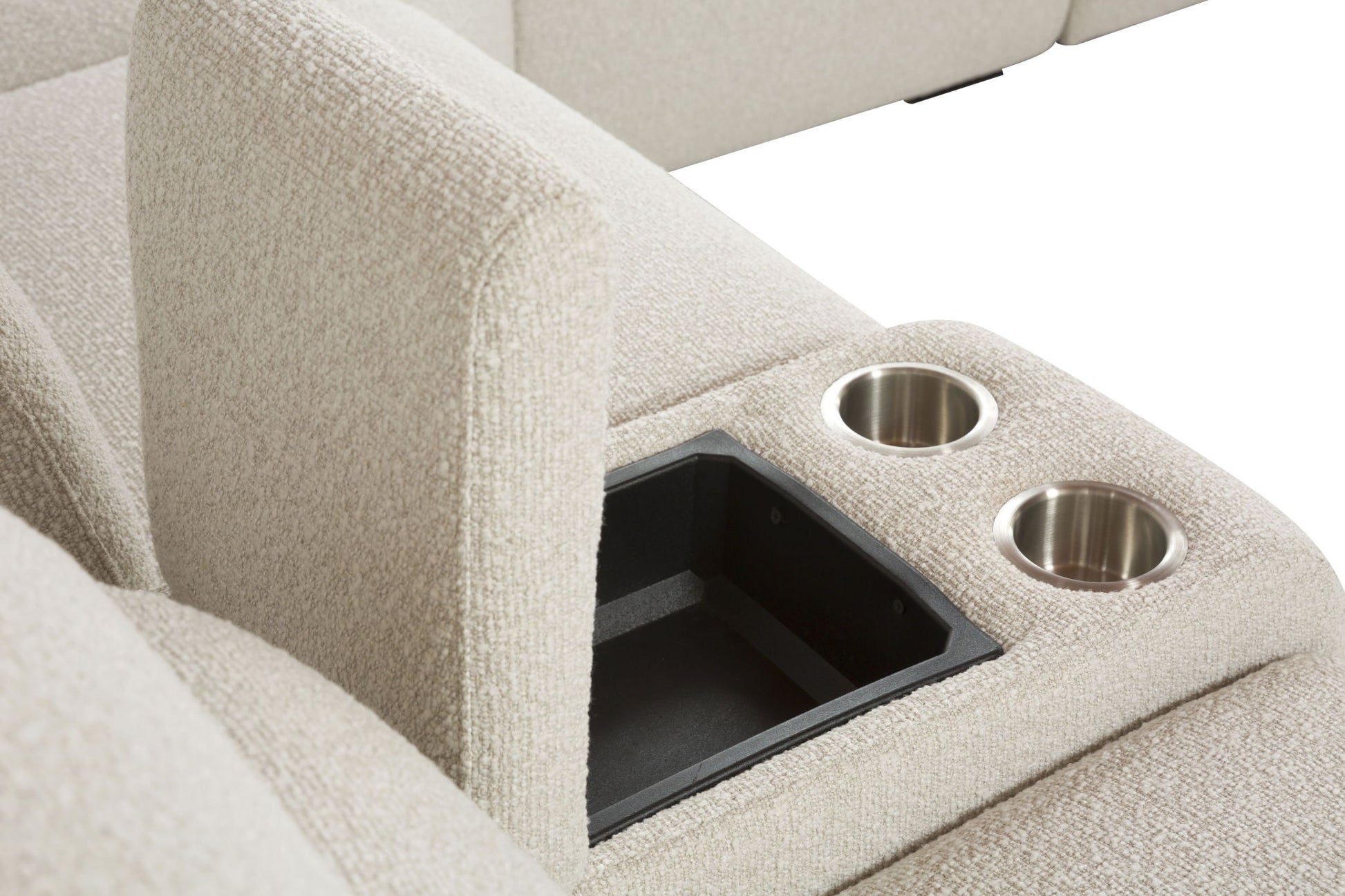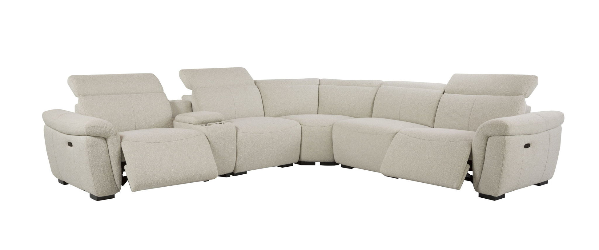 Dayana - Boucle Power Recliner Sectional Sofa For 5 People With Cupholder Console Adjustable Headrest - Beige