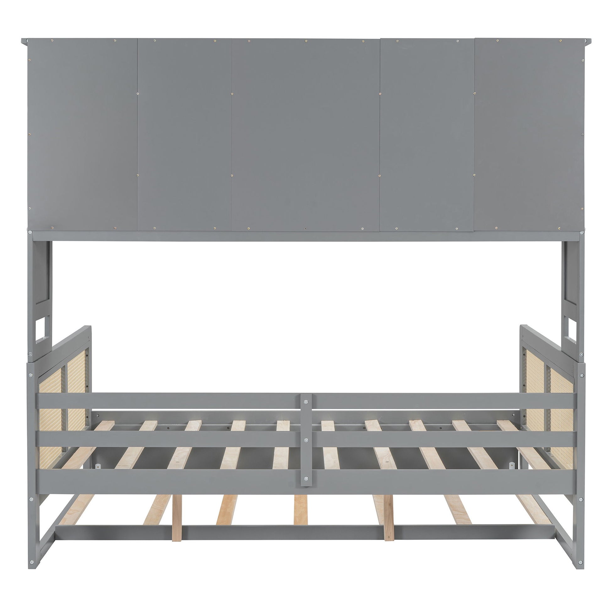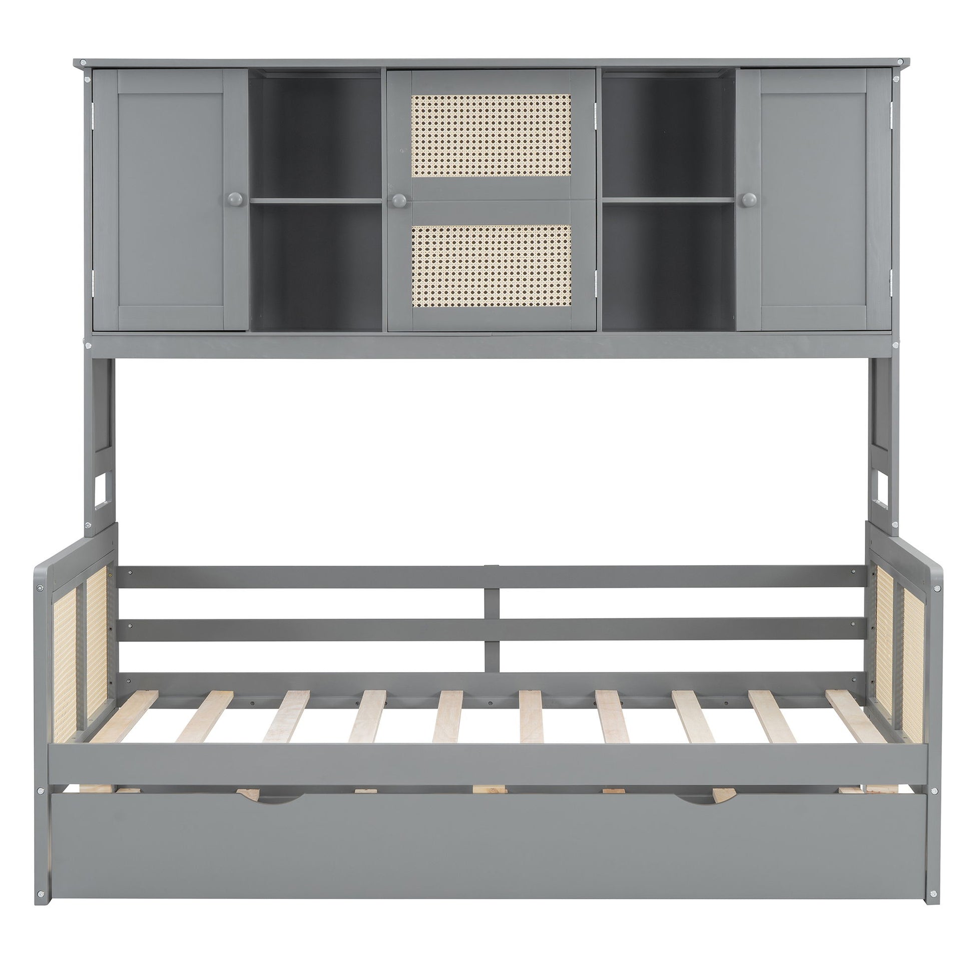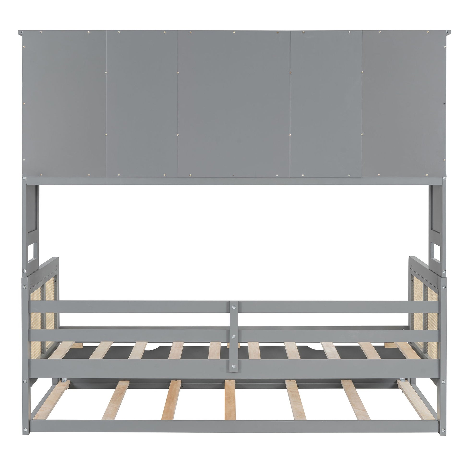 Full Size Wooden Daybed & Twin Size Trundle, And All In One Cabinet And Shelf - Gray