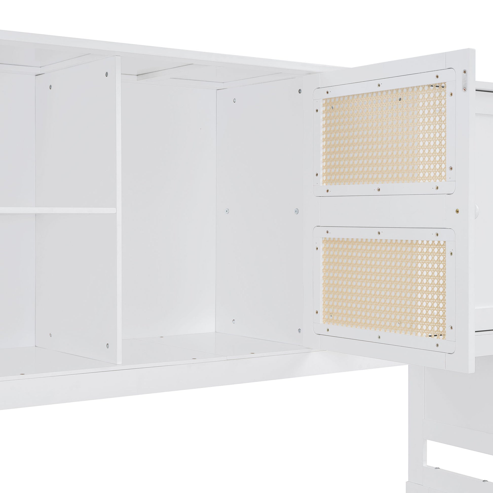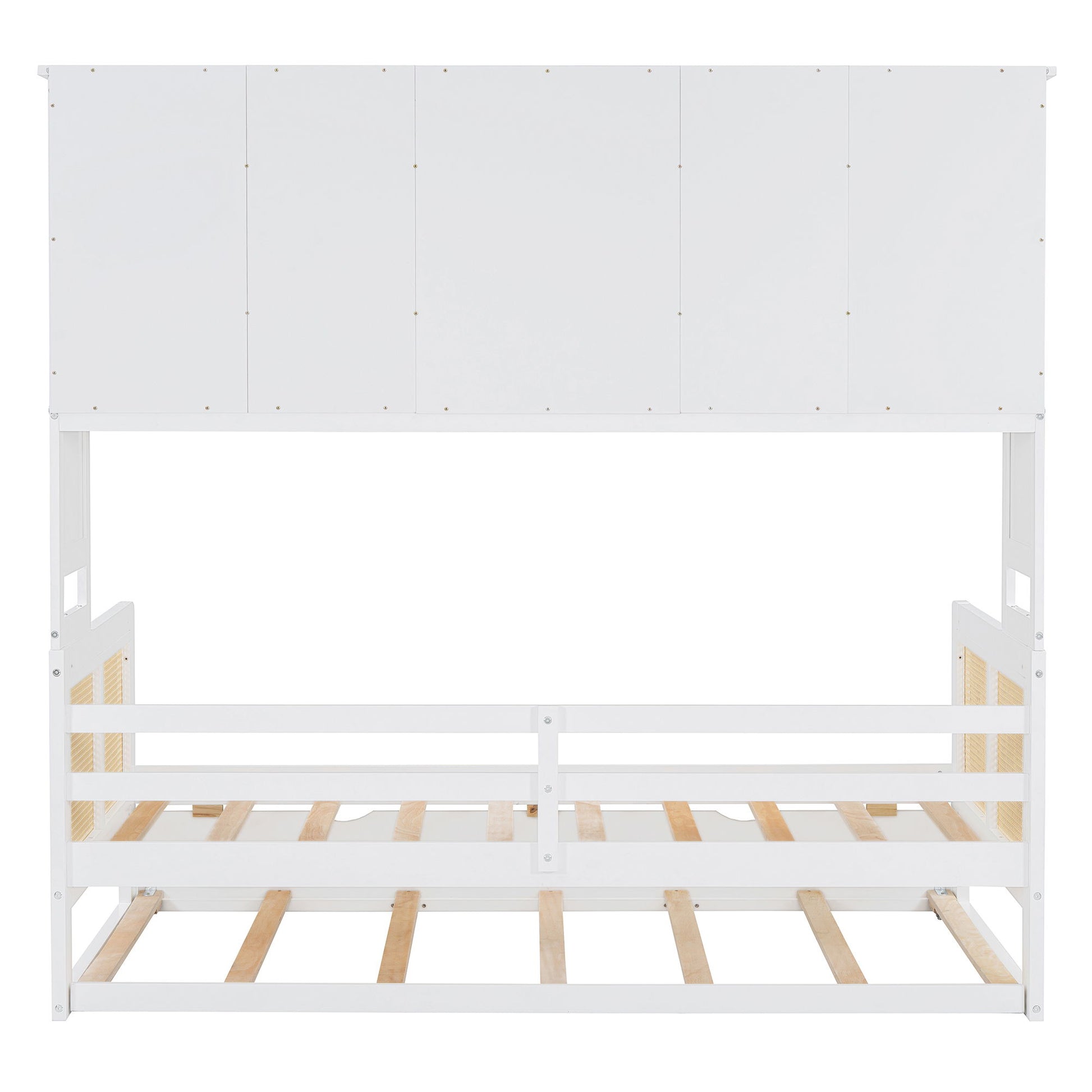 Full Size Wooden Daybed & Twin Size Trundle, And All In One Cabinet And Shelf - White