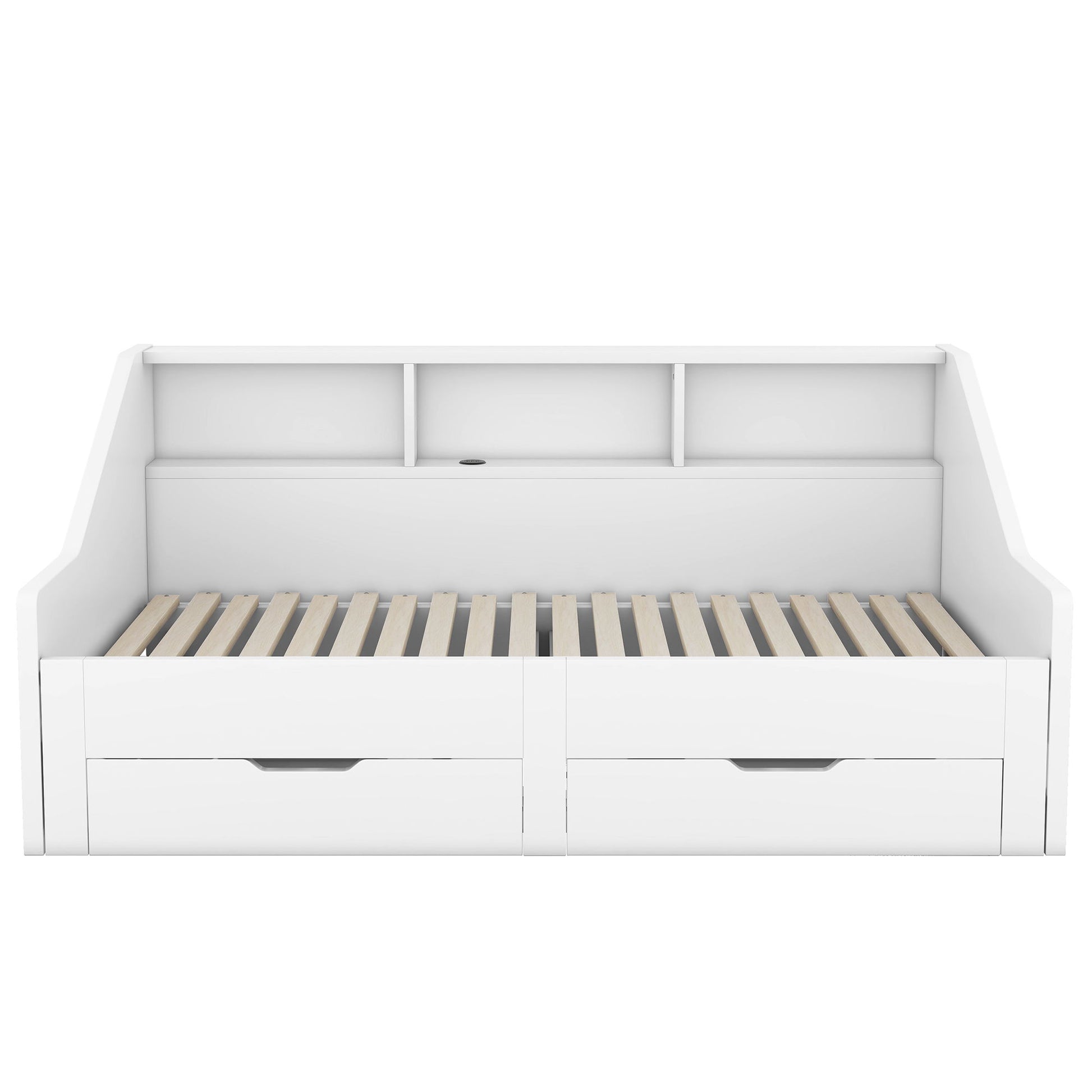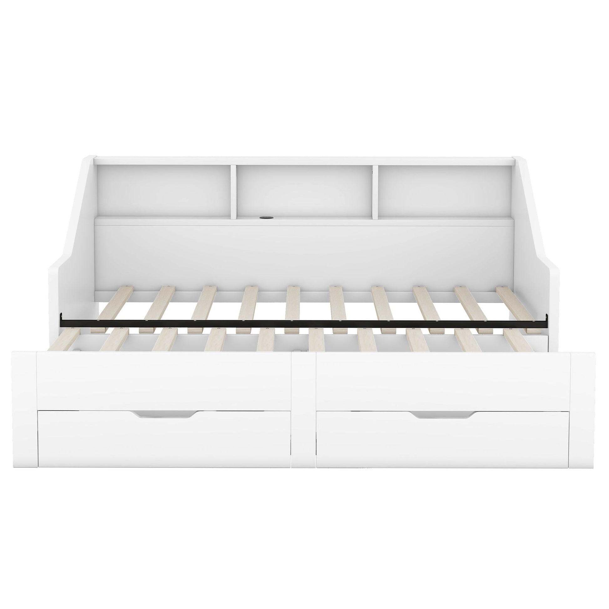 Daybed Frame With Storage Bookcases, 2 Drawers, Charging Station