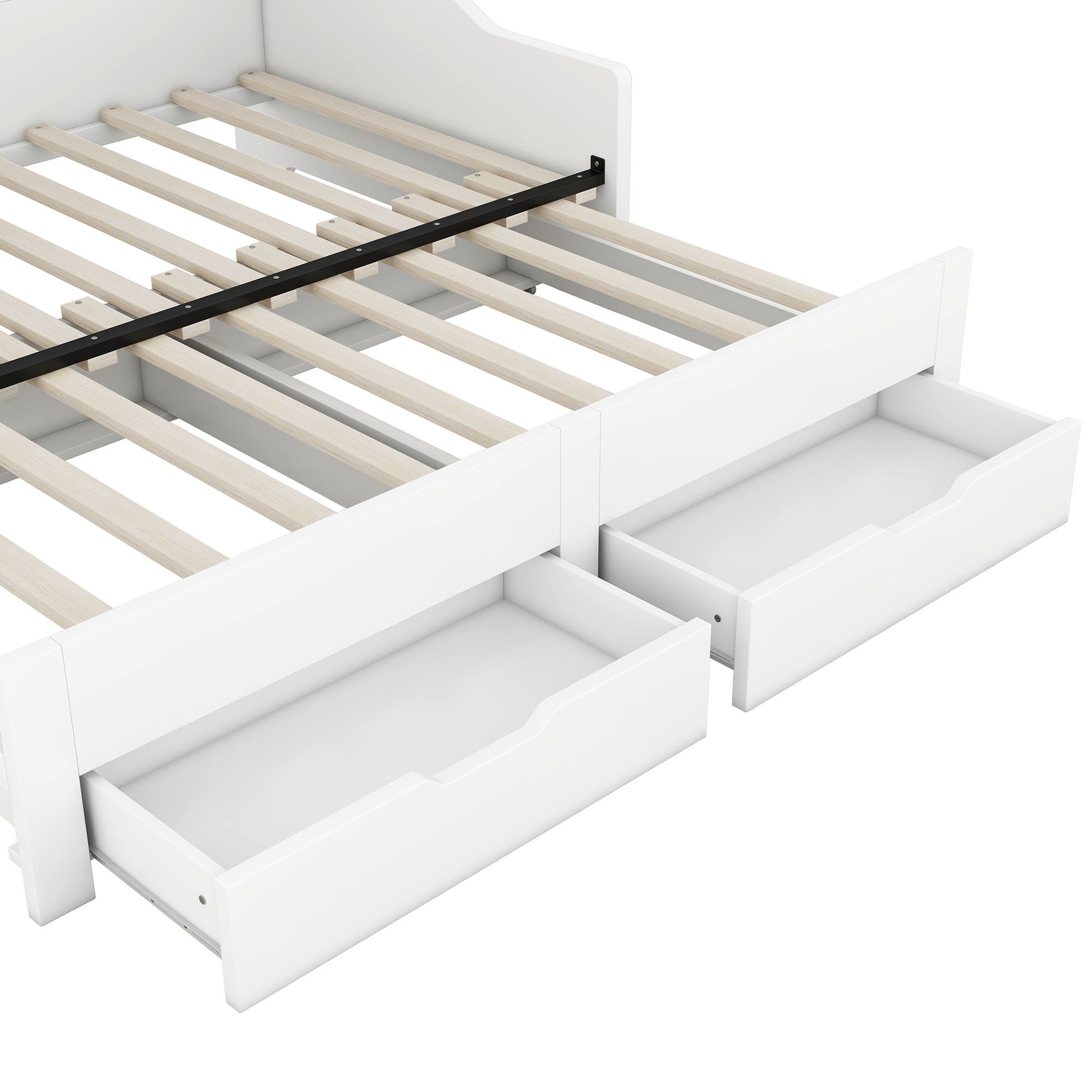 Twin To King Daybed Frame With Storage Bookcases And 2 Drawers, Charging Station - White