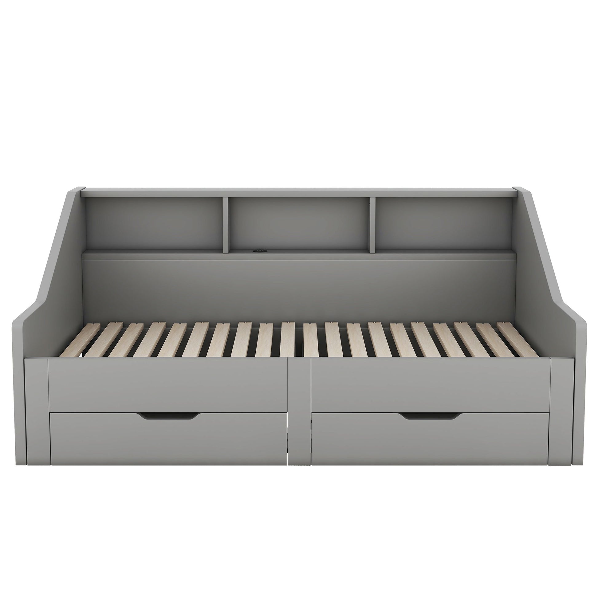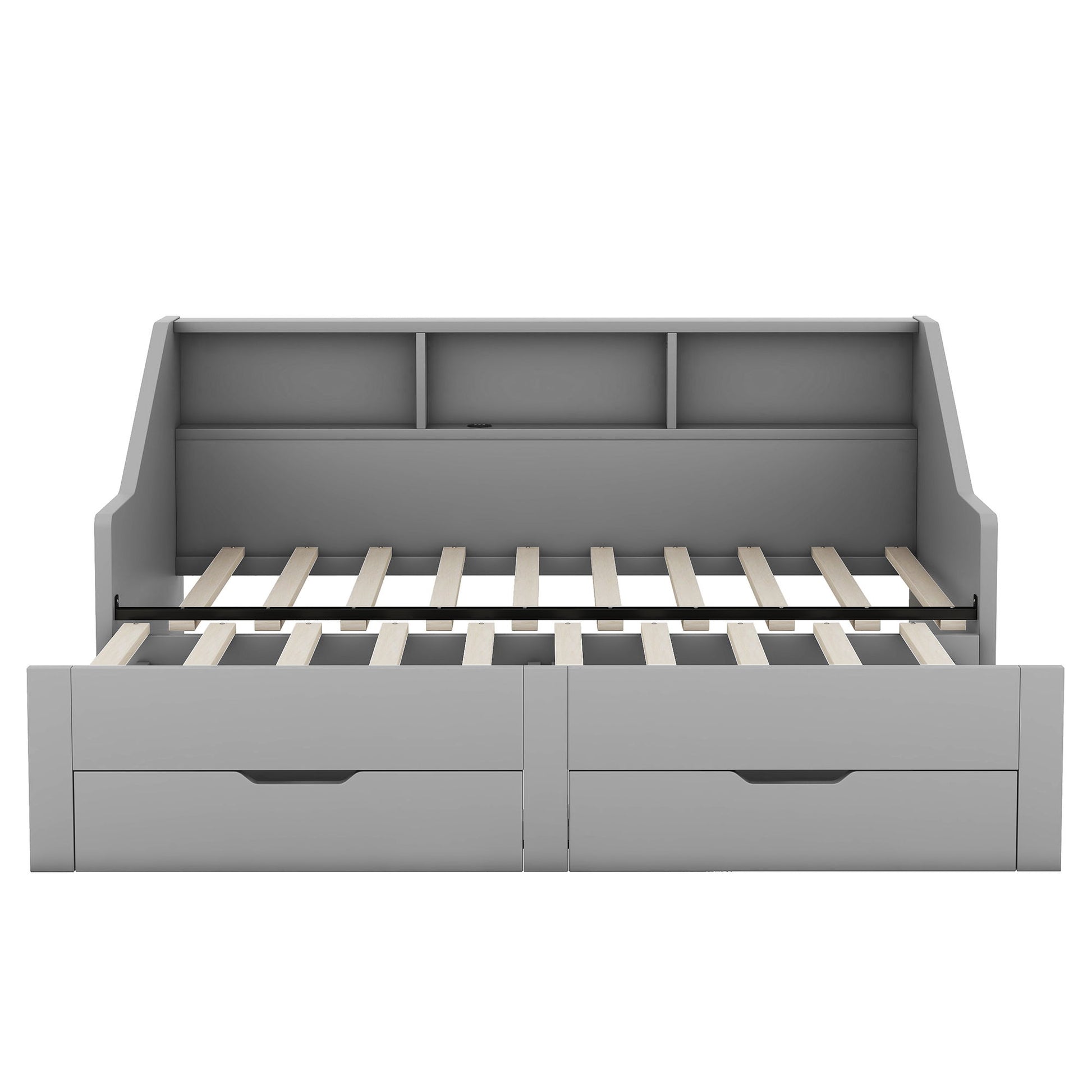Twin To King Daybed Frame With Storage Bookcases And 2 Drawers, Charging Station - Gray