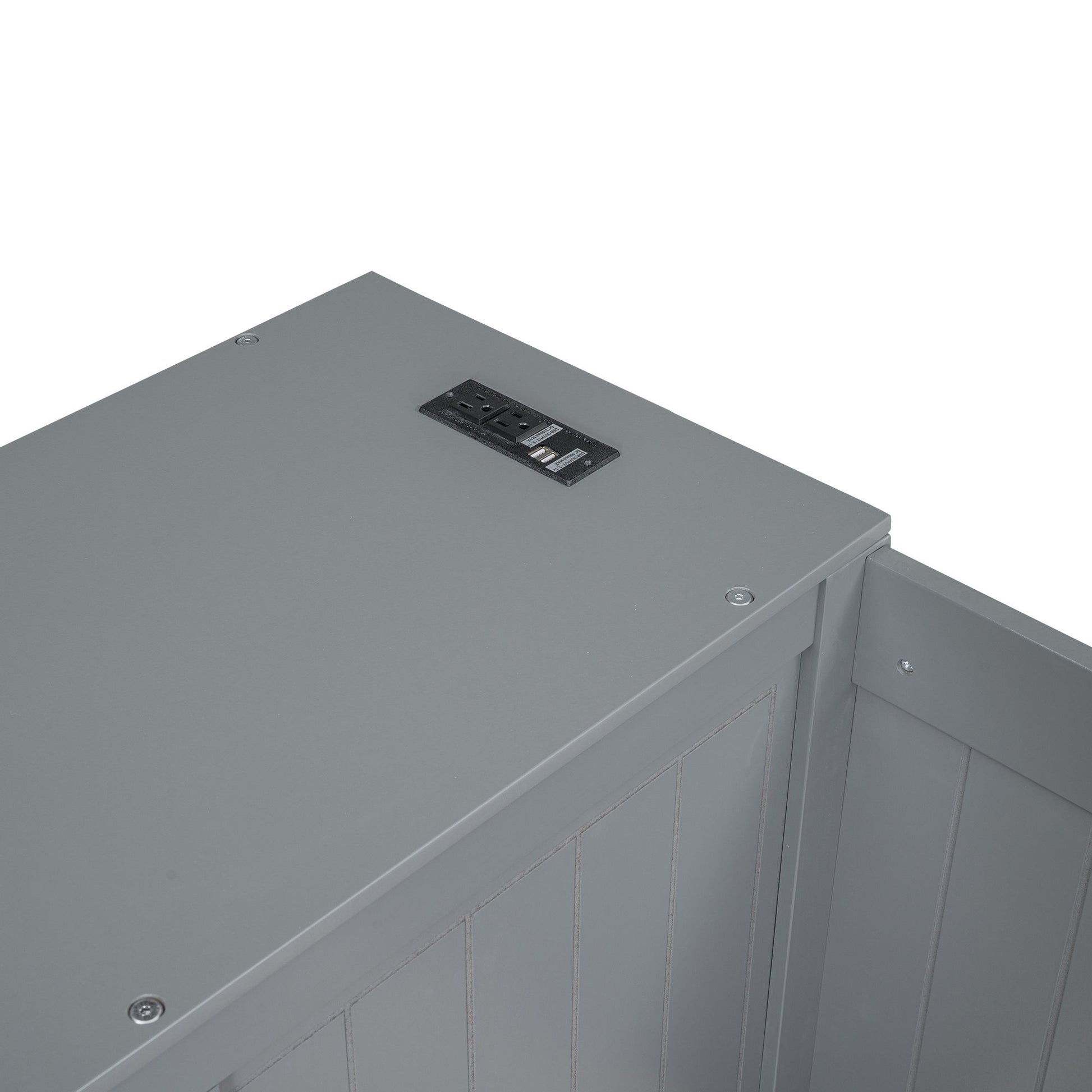 Twin Size Daybed With Storage Arms, Trundle, Charging Station - Gray