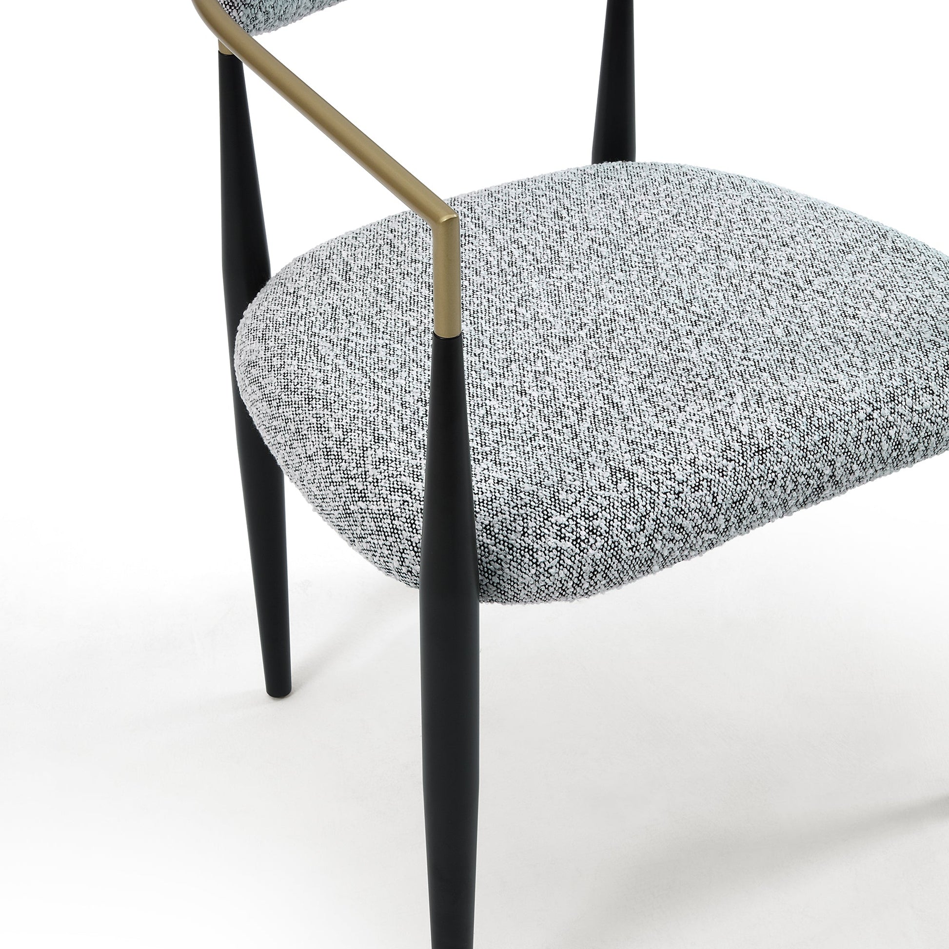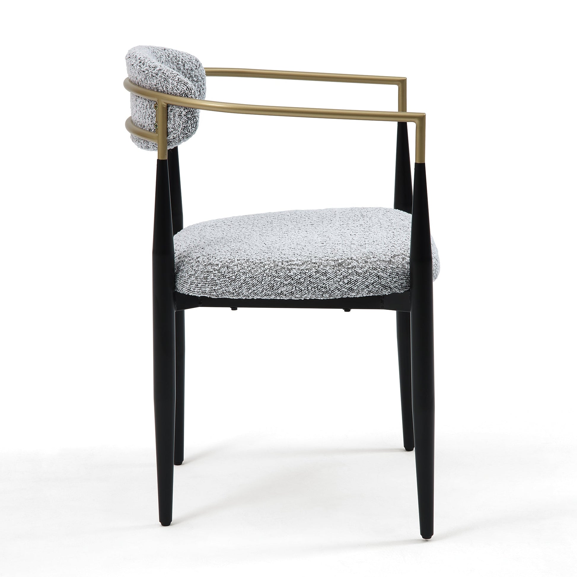Elevate your dining space with this set of 2 fabric dining chairs. Designed with a soft fabric upholstery and a sturdy MDF and metal frame, they feature a sleek brushed gold and black base for a contemporary touch. Generously padded with foam, these chairs offer lasting comfort and support, making them ideal for both everyday meals and special occasions. Their neutral design effortlessly complements various décor styles, adding sophistication to any dining room.