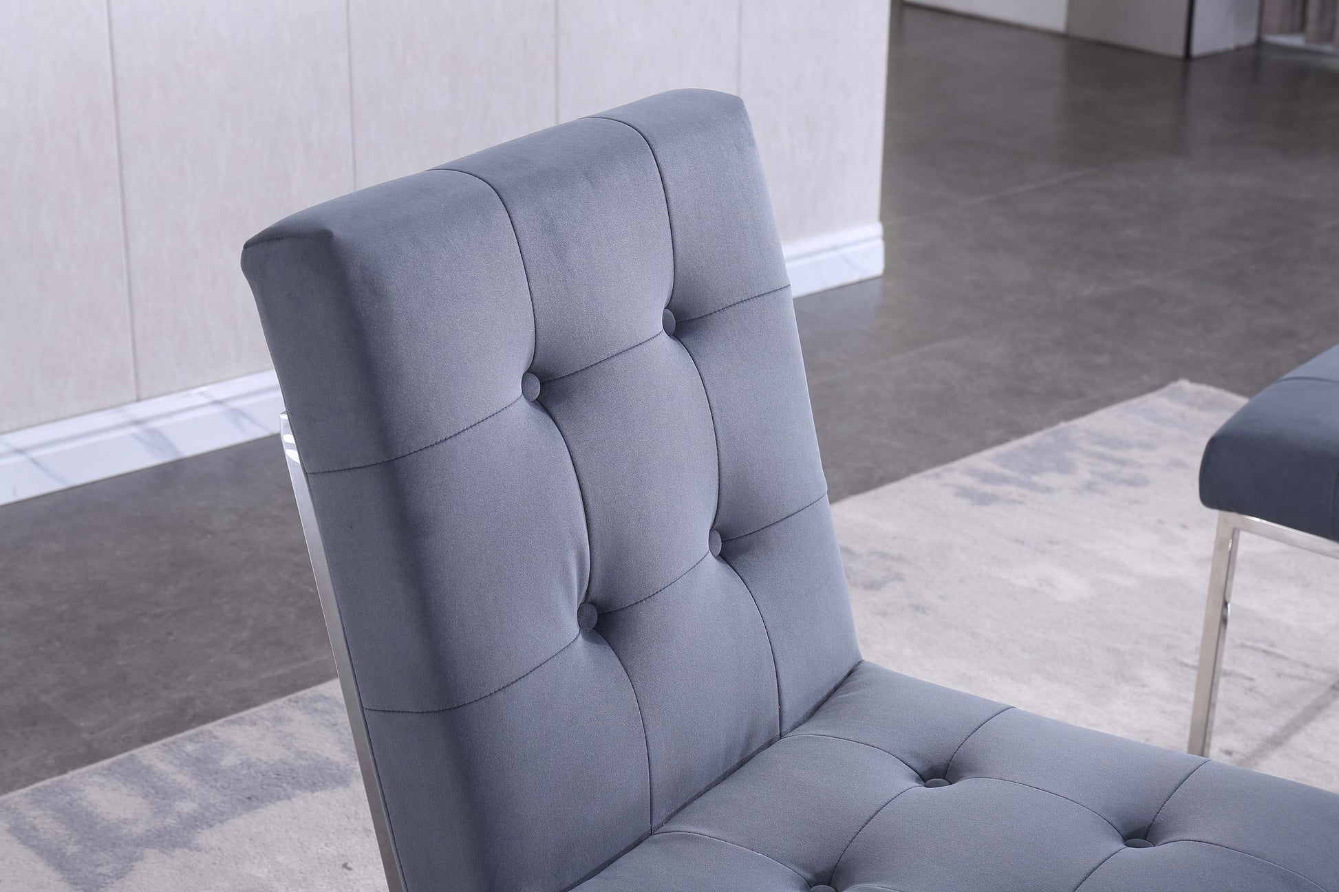 Elevate your dining space with our Elegant Velvet Dining Chair Set. Each set includes two luxurious chairs, meticulously crafted for both style and comfort. The plush velvet fabric is available in White, Beige, Blue, Black, and Grey, perfectly complementing any decor. The stainless steel frame with a gold mirrored finish adds a touch of sophistication and modernity to your dining area. With an overall size of 20.5"L x 27.8"D x 37.4"H, these chairs are designed to offer both elegance and ample seating space.