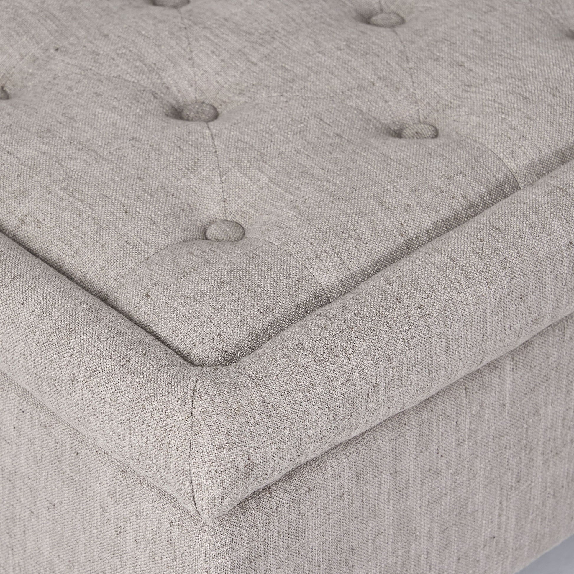 - Tufted Storage Ottoman – A luxurious tufted top and spacious storage compartment make this grey fabric ottoman perfect for living rooms, bedrooms, or offices.