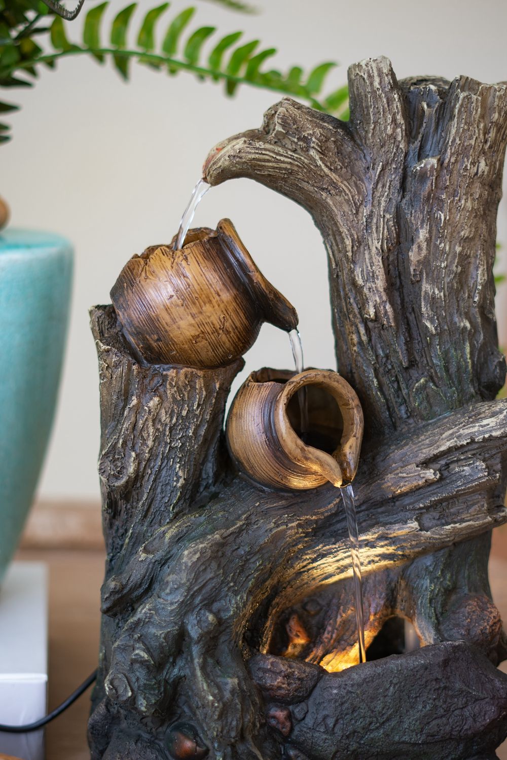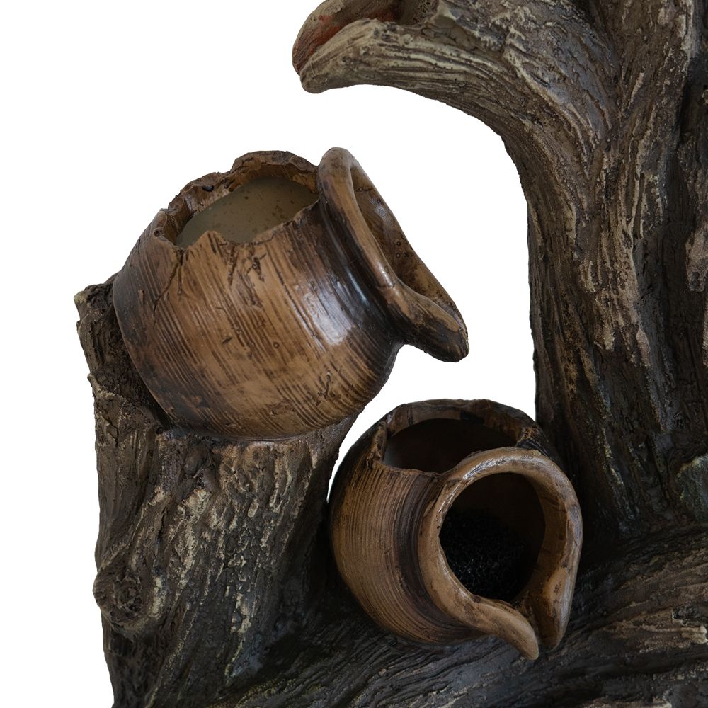 Decorative 4 Tier Broken Pot Water Fountain With LED Light - Brown