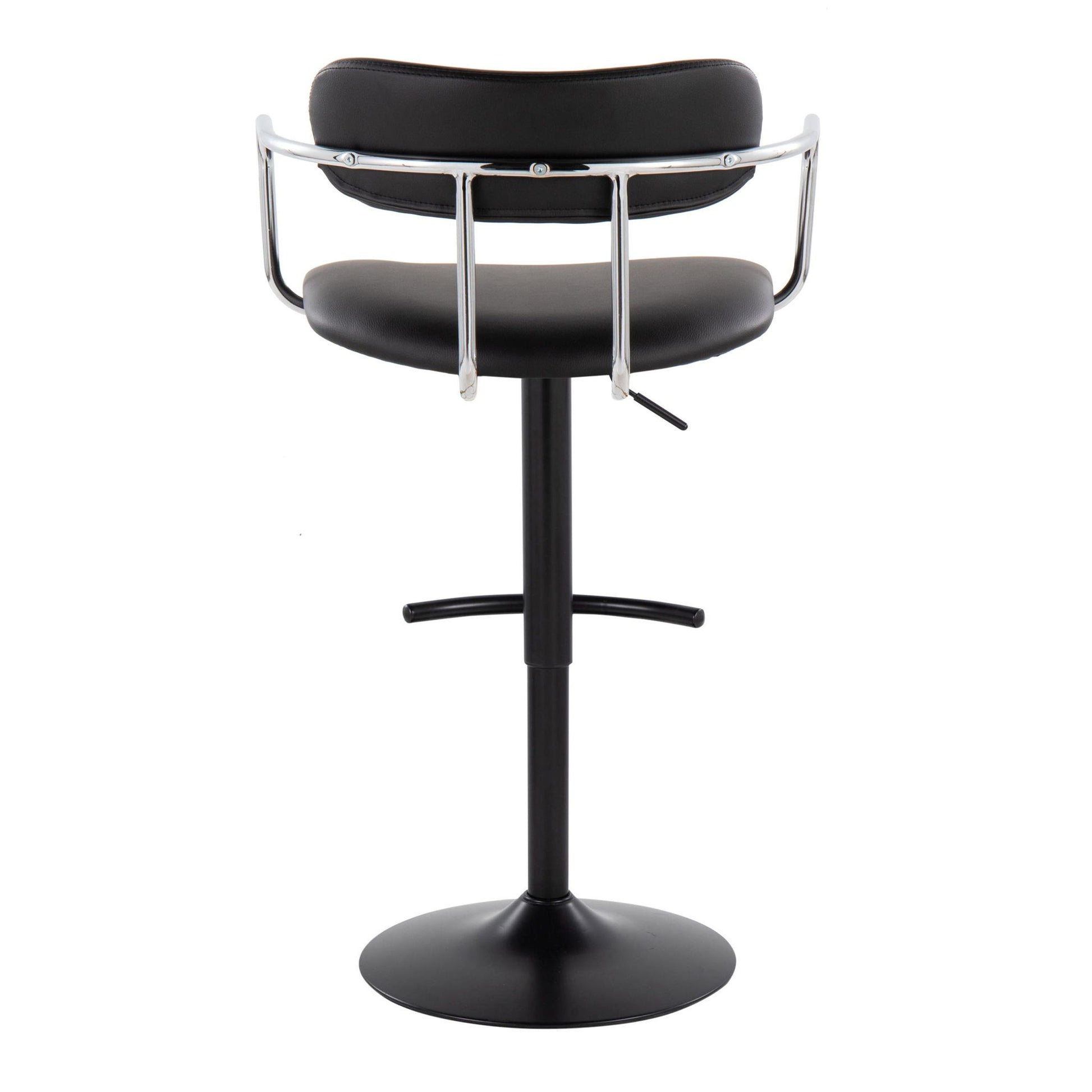 Demi - Contemporary Adjustable Height Barstool With Swivel With Rounded T Footrest (Set of 2) - Black / Chrome / Black