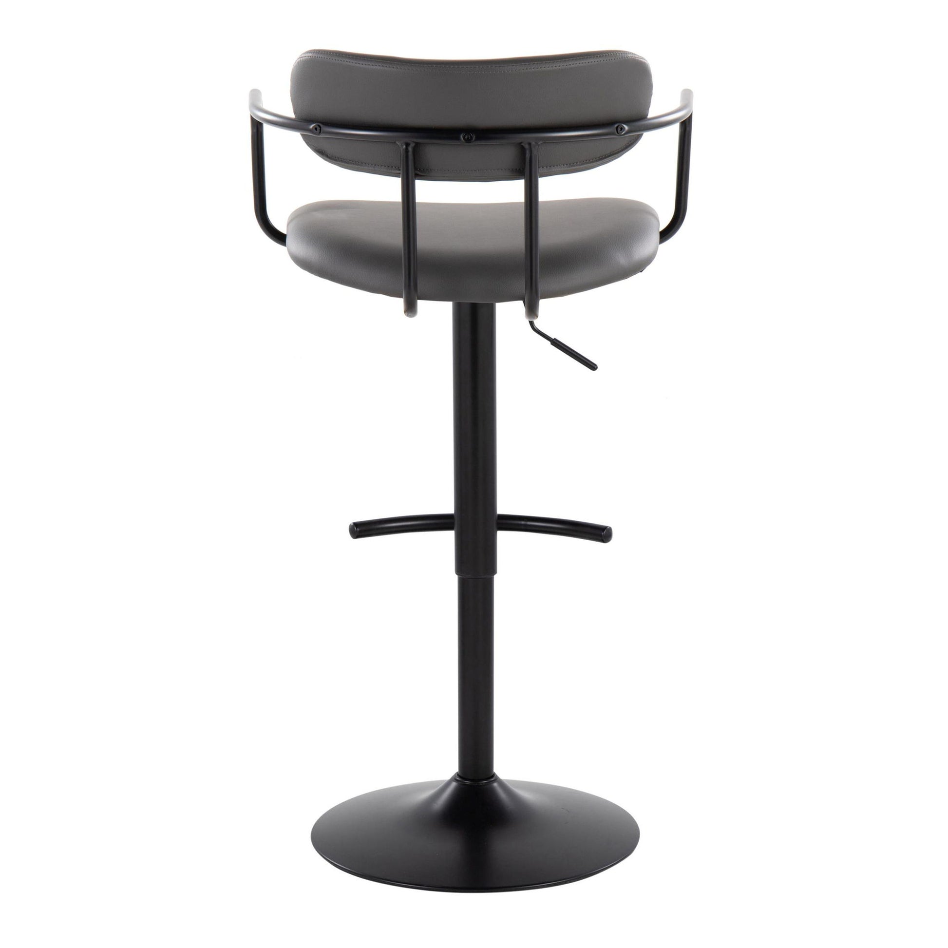 Demi - Contemporary Adjustable Height Barstool With Swivel With Rounded T Footrest (Set of 2) - Black / Gray