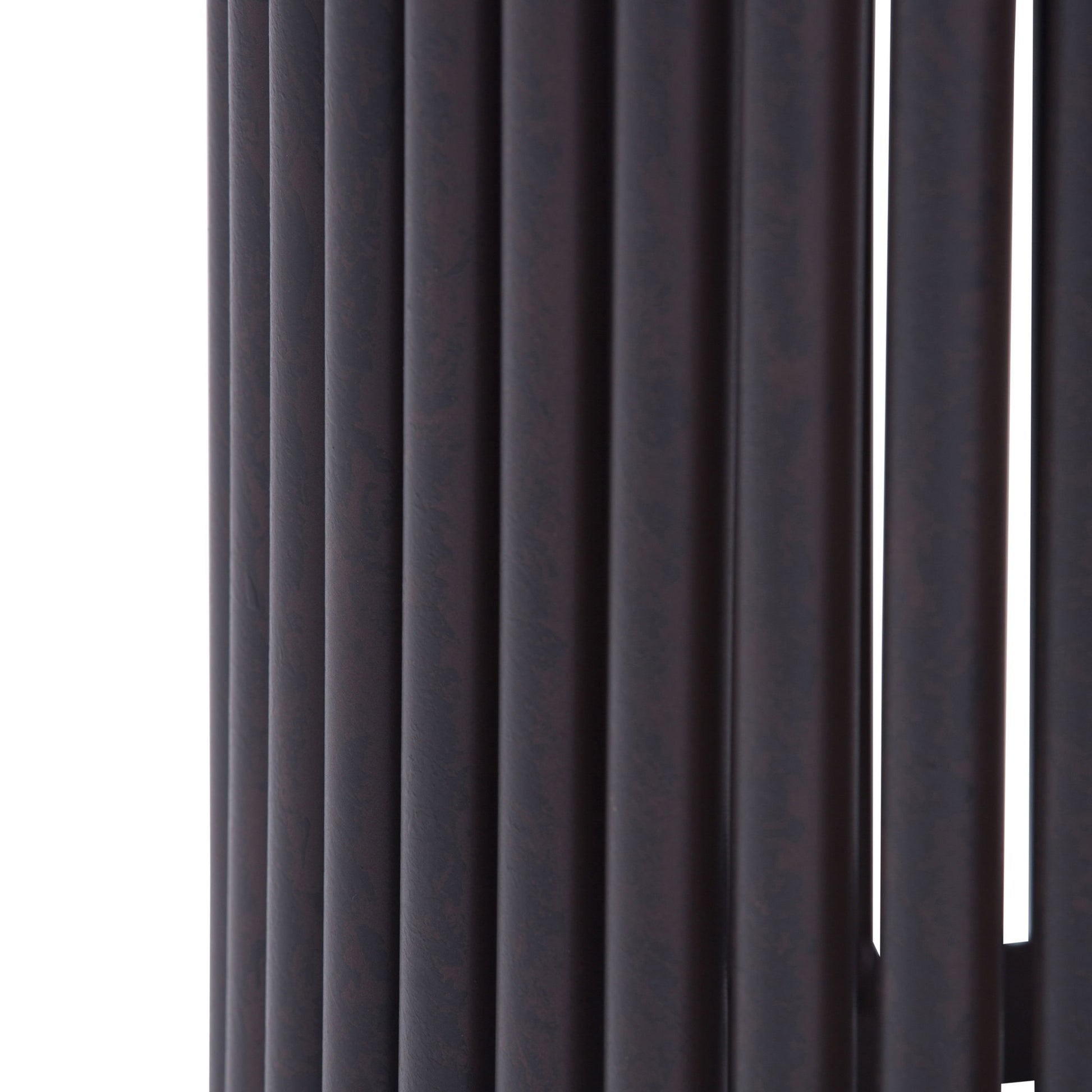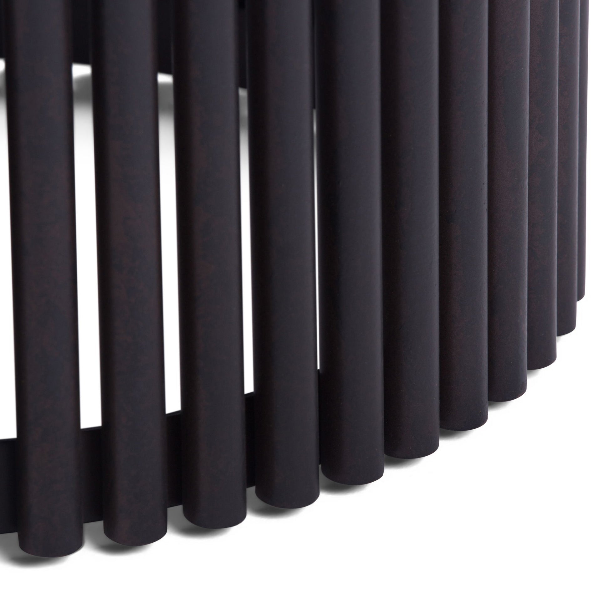 - Features solid wood table top and tall cylinder shape with unique pipe design base