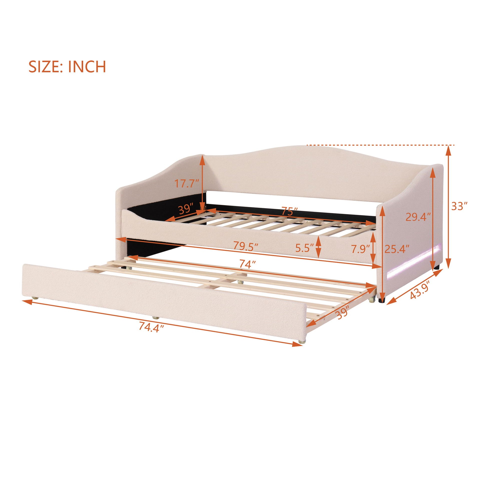 Twin Size Upholstered Daybed With Light And Trundle - Beige