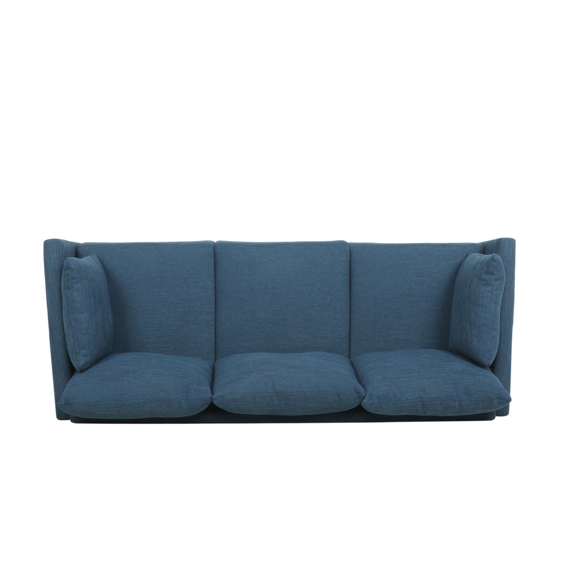 Diaphanous - Upholstered 3 Seater Sofa With 2 Accent Pillows And Wood Legs - Navy Blue